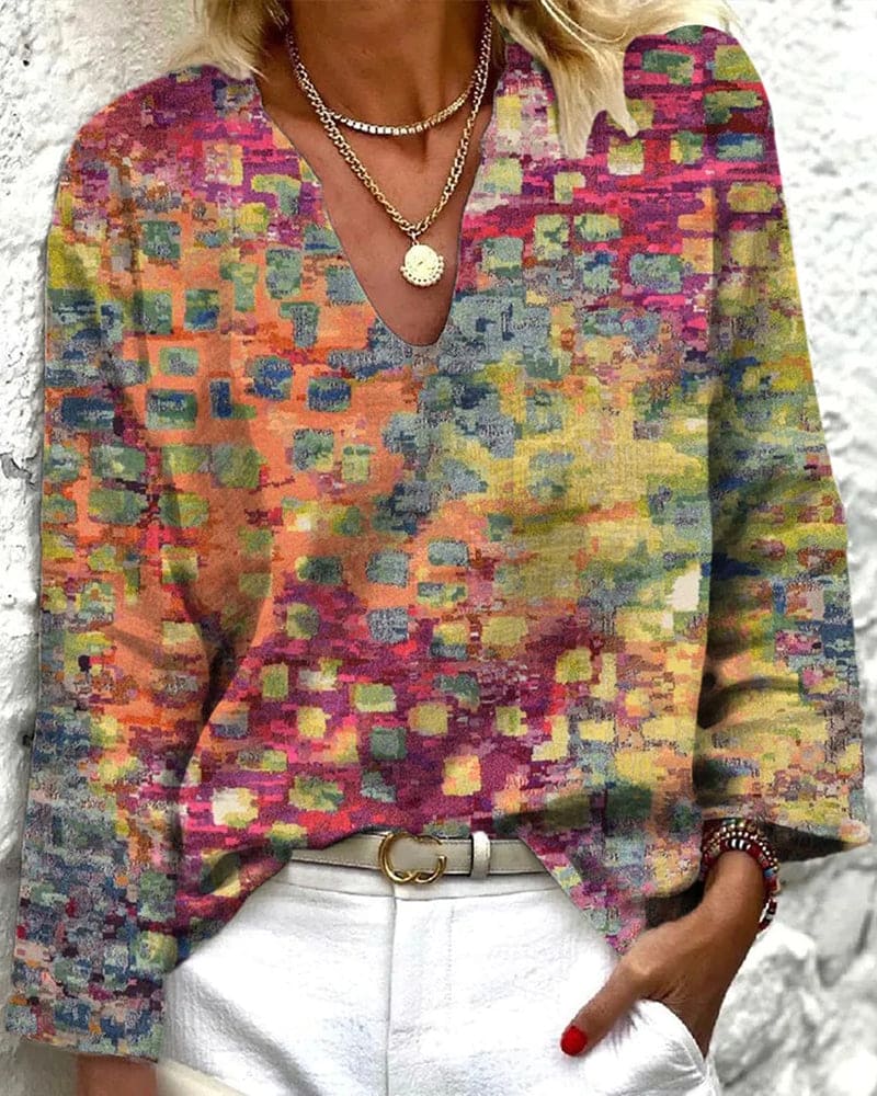 Kot | Kolorowa bluzka z dekoltem w kształcie litery V