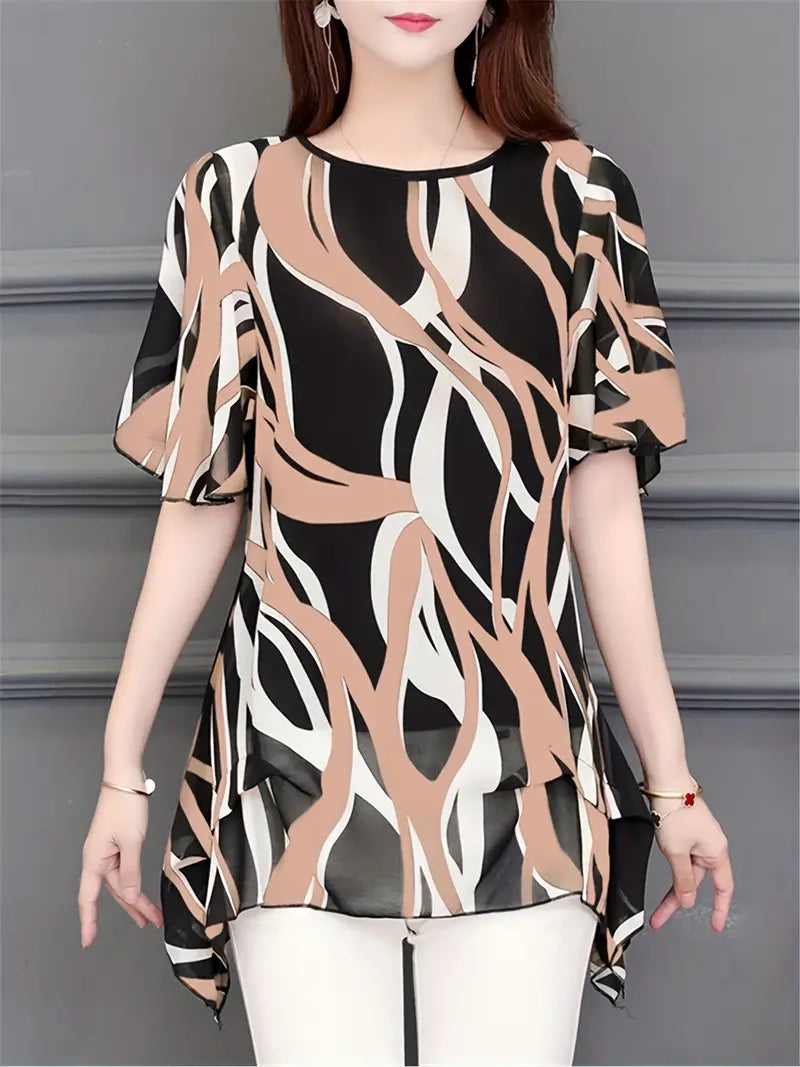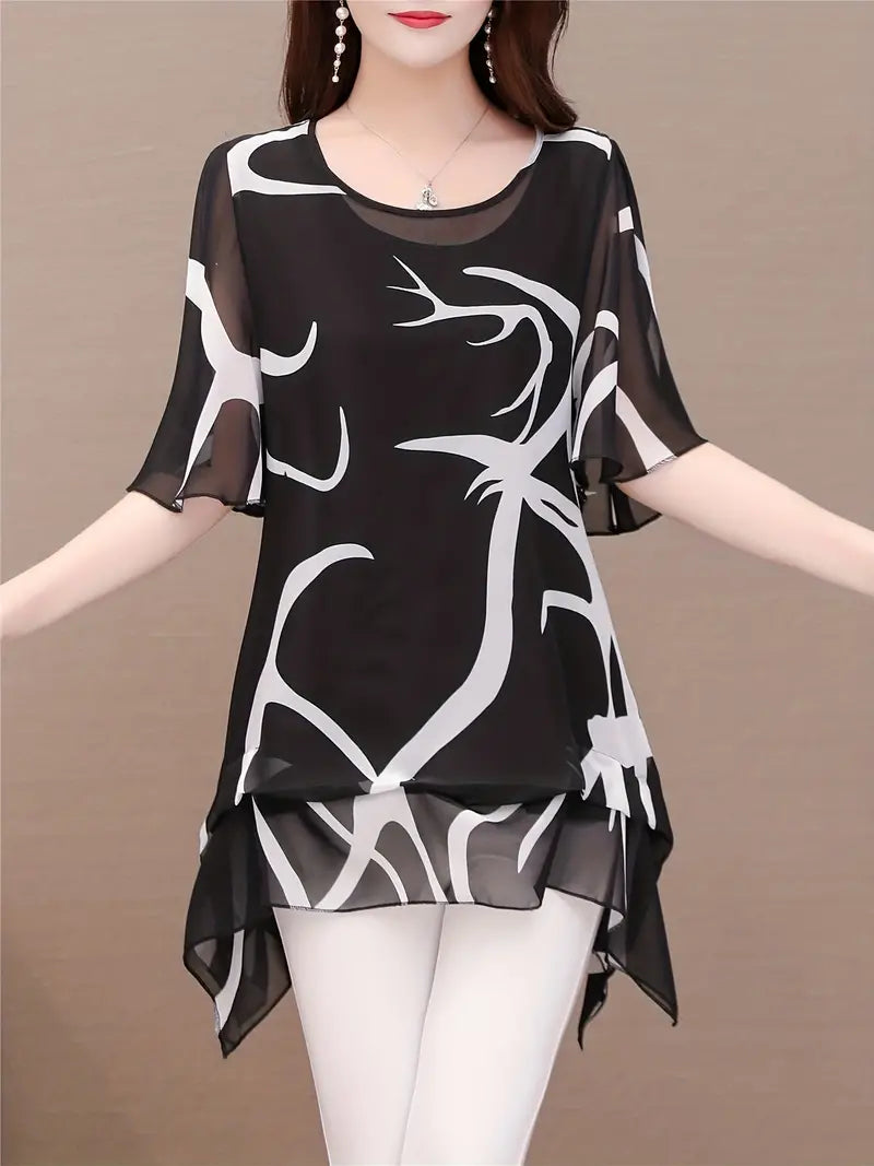 Casualowa bluzka z półokrągłym dekoltem i asymetrycznym dołem
