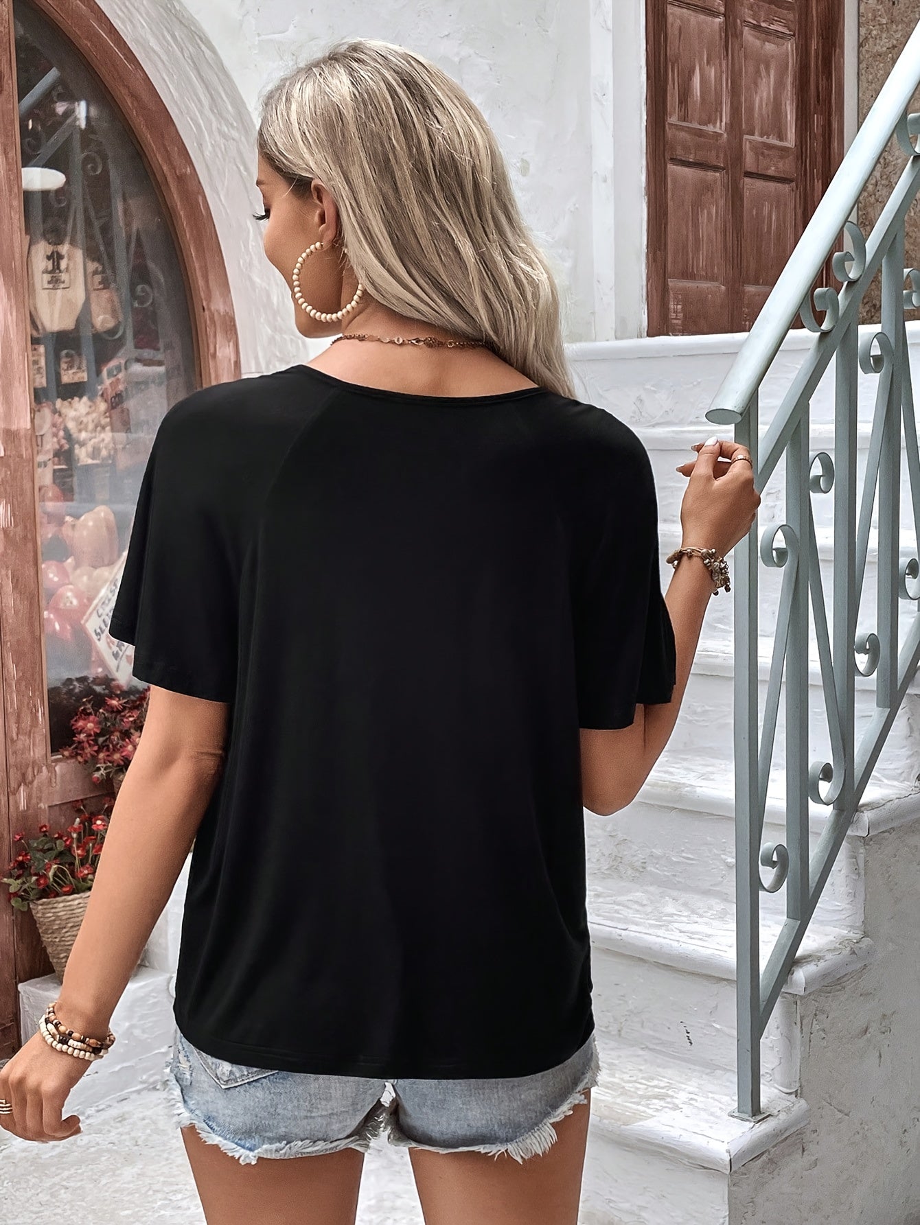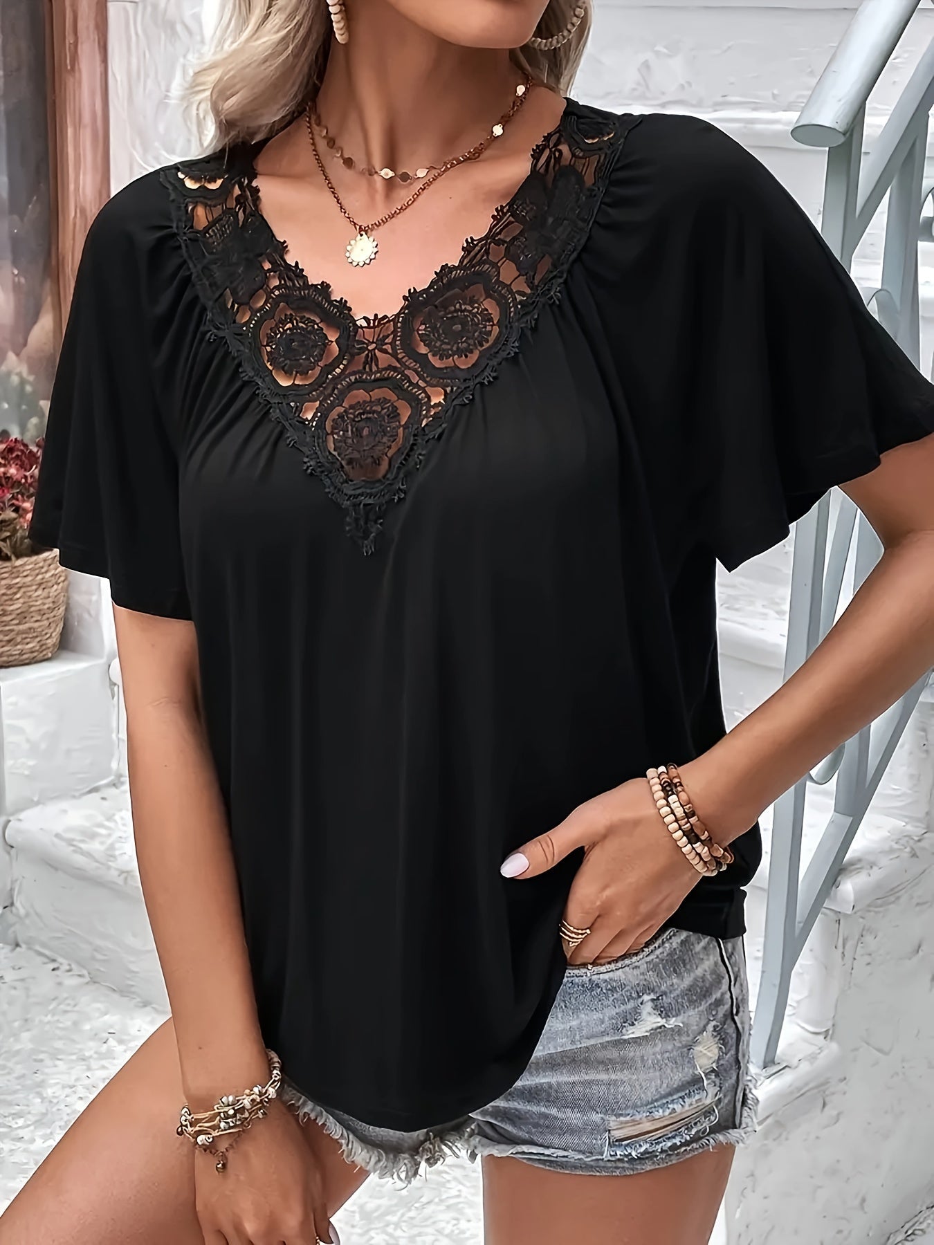 Ta swobodna damska top z koronkowym przycinaniem łączy styl i komfort. Wykonany z oddychającej mieszanki lnianej, jest idealny na ciepłe letnie dni. Delikatna koronkowa podstawa na rąbku zapewnia kobiecą nutę, a krótkie rękawy i luźne cięcie zapewniają wygodne dopasowanie. Niezależnie od tego, czy w życiu codziennym, czy zrelaksowany wolny czas, ten top można połączyć na wiele sposobów i prawdziwego oka.