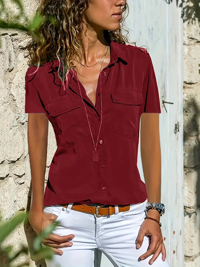 Casualowa letnia koszula z krótkim rękawem i wywijanym kołnierzykiem