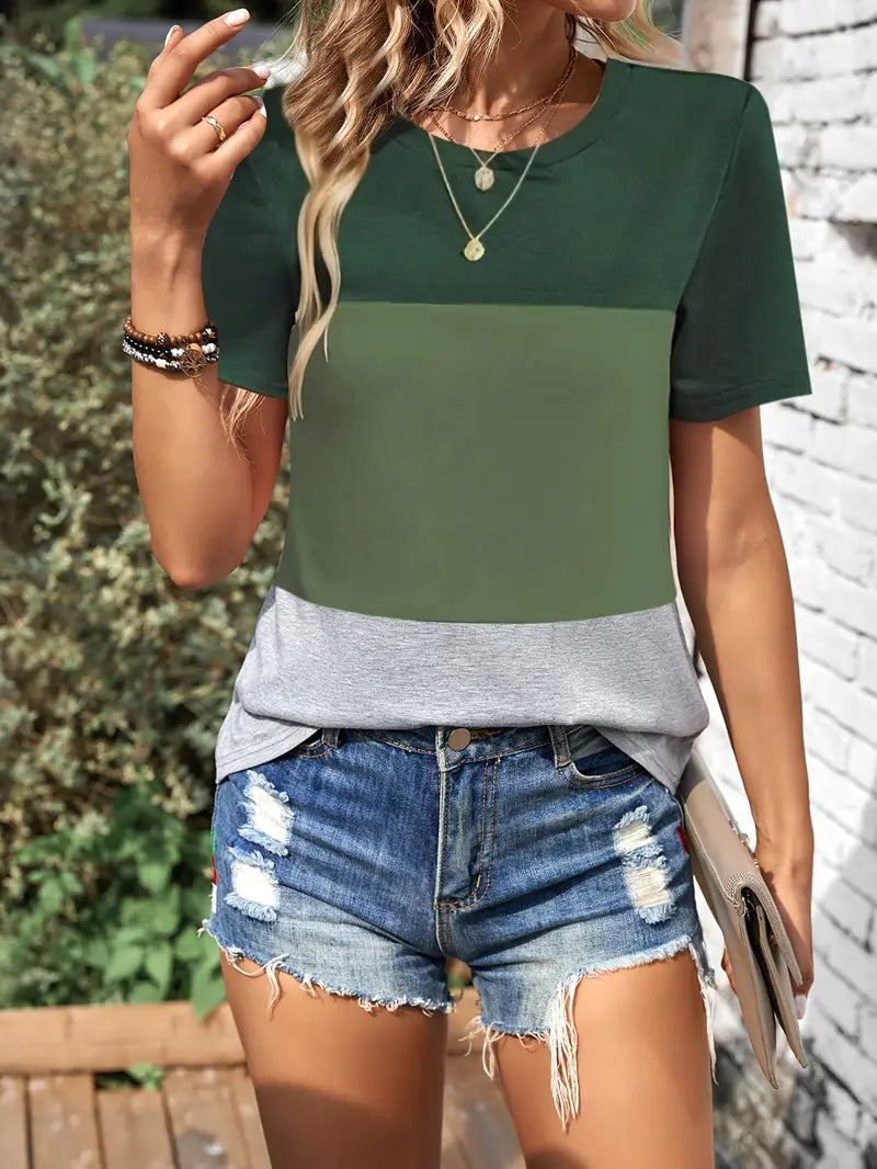 Casualowa koszulka z krótkim rękawem, okrągłym dekoltem i kolorowymi wstawkami