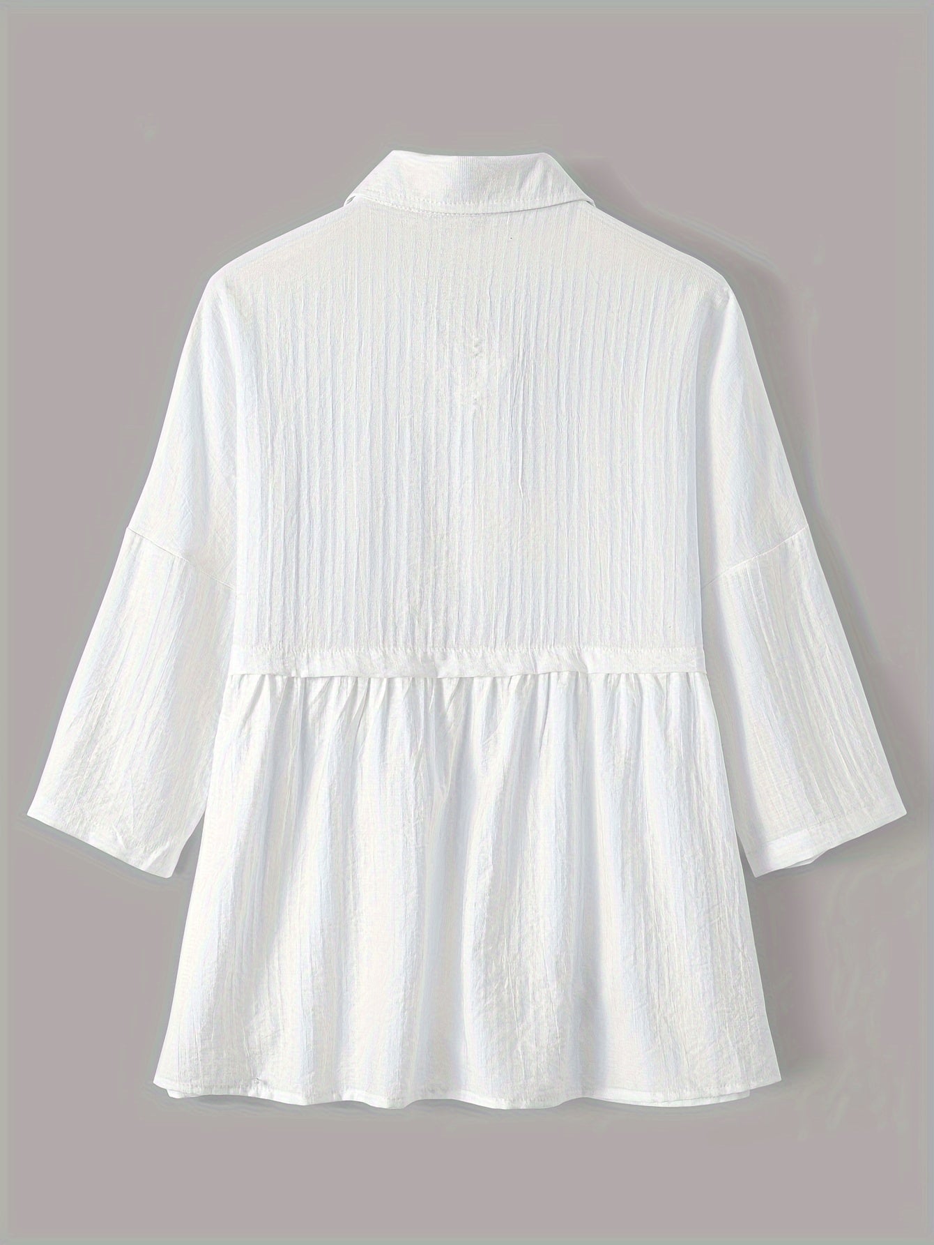 Powiększ swoją letnią garderobę o tę elegancką białą koszulę o lnianym wyglądzie. Wykonany z wysokiej jakości poliestru, ten oddychający i lekki top jest idealny na ciepłe dni. Niezależnie od tego, czy spędzasz czas wolny, w biurze, czy na spacerze po plaży, ta wszechstronna koszula zapewni Ci chłód i styl przez cały dzień.