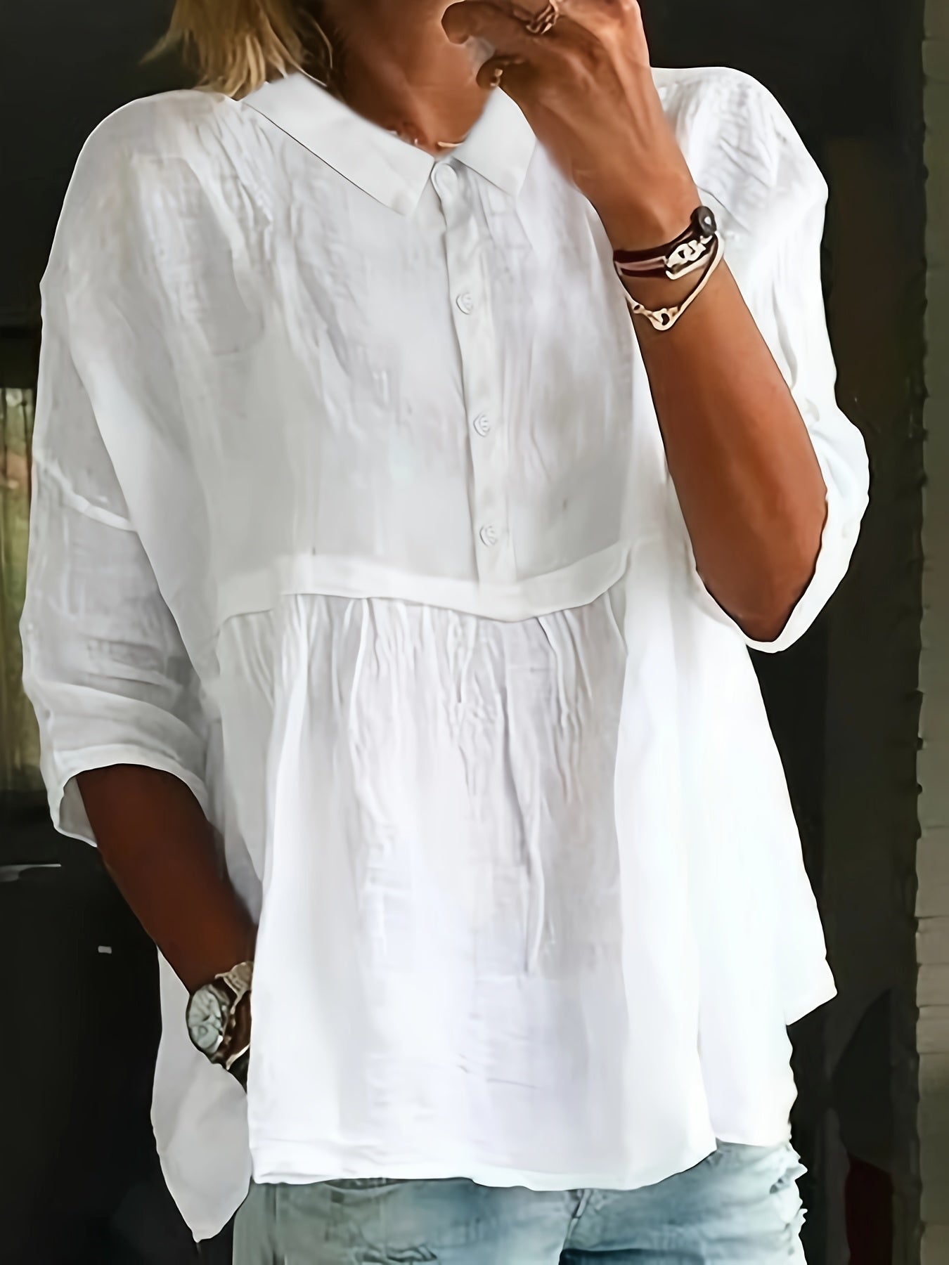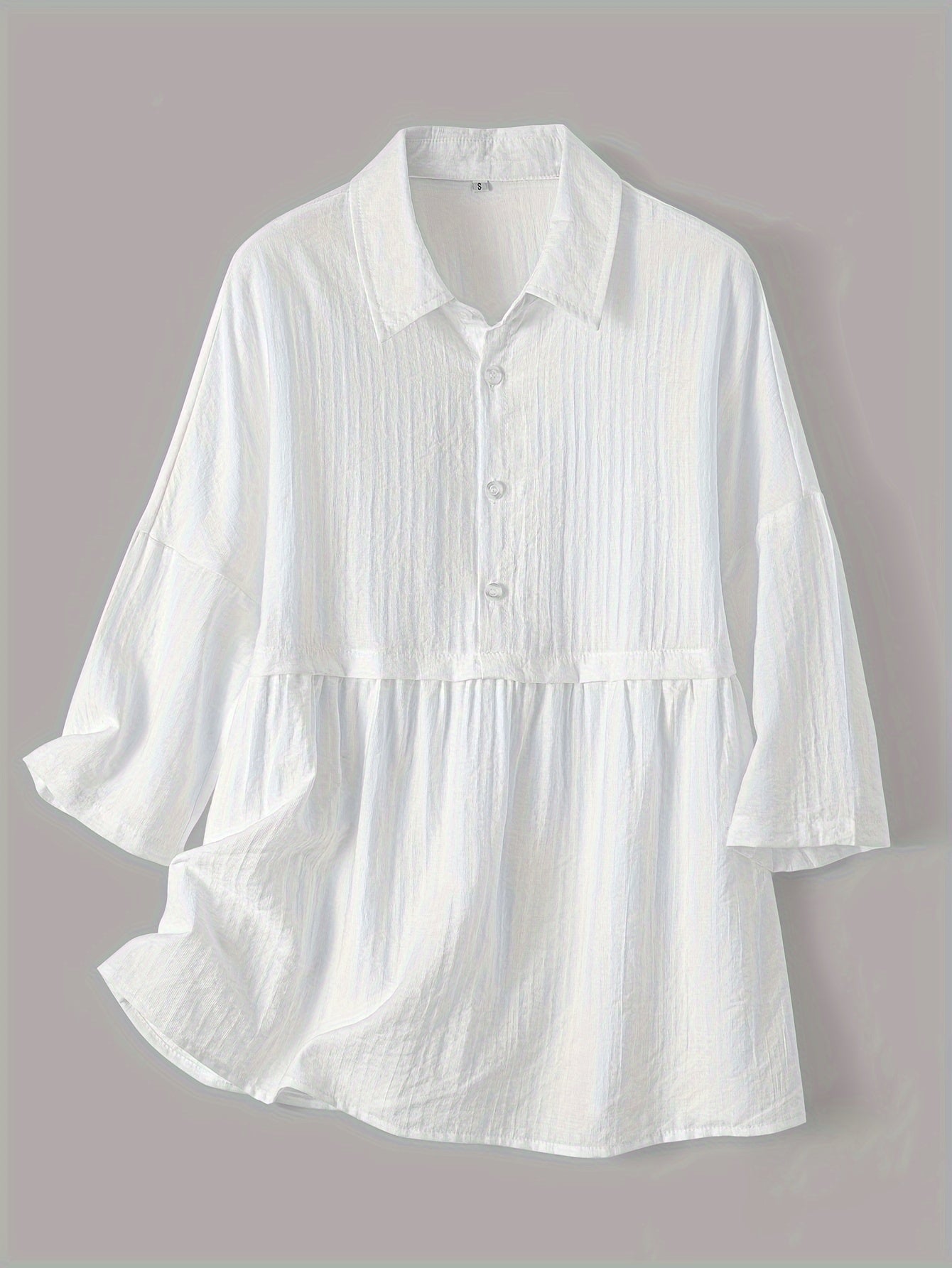Lniana bluzka w kolorze białym, casualowa koszula z długim rękawem 3/4 na wiosnę i lato