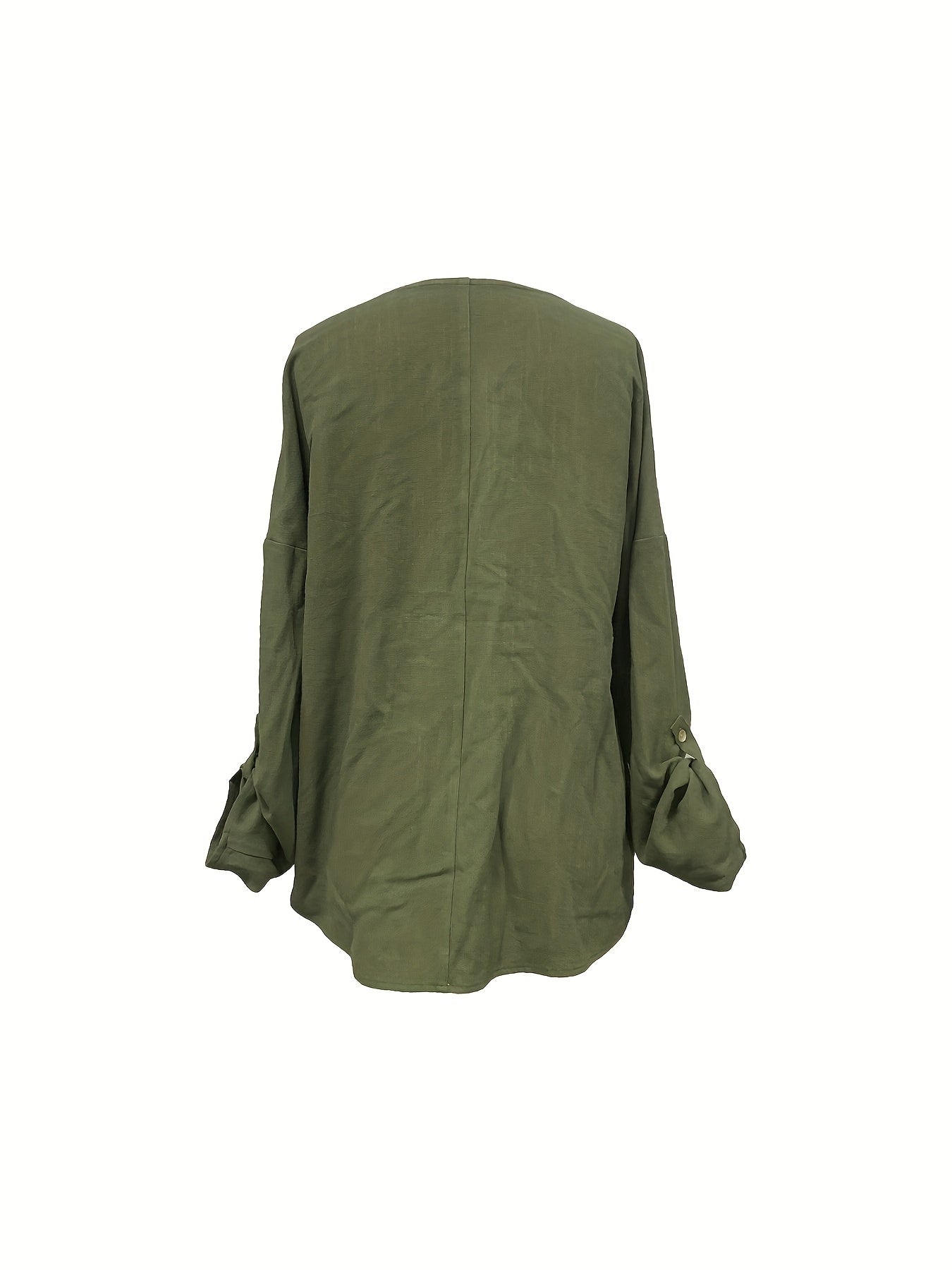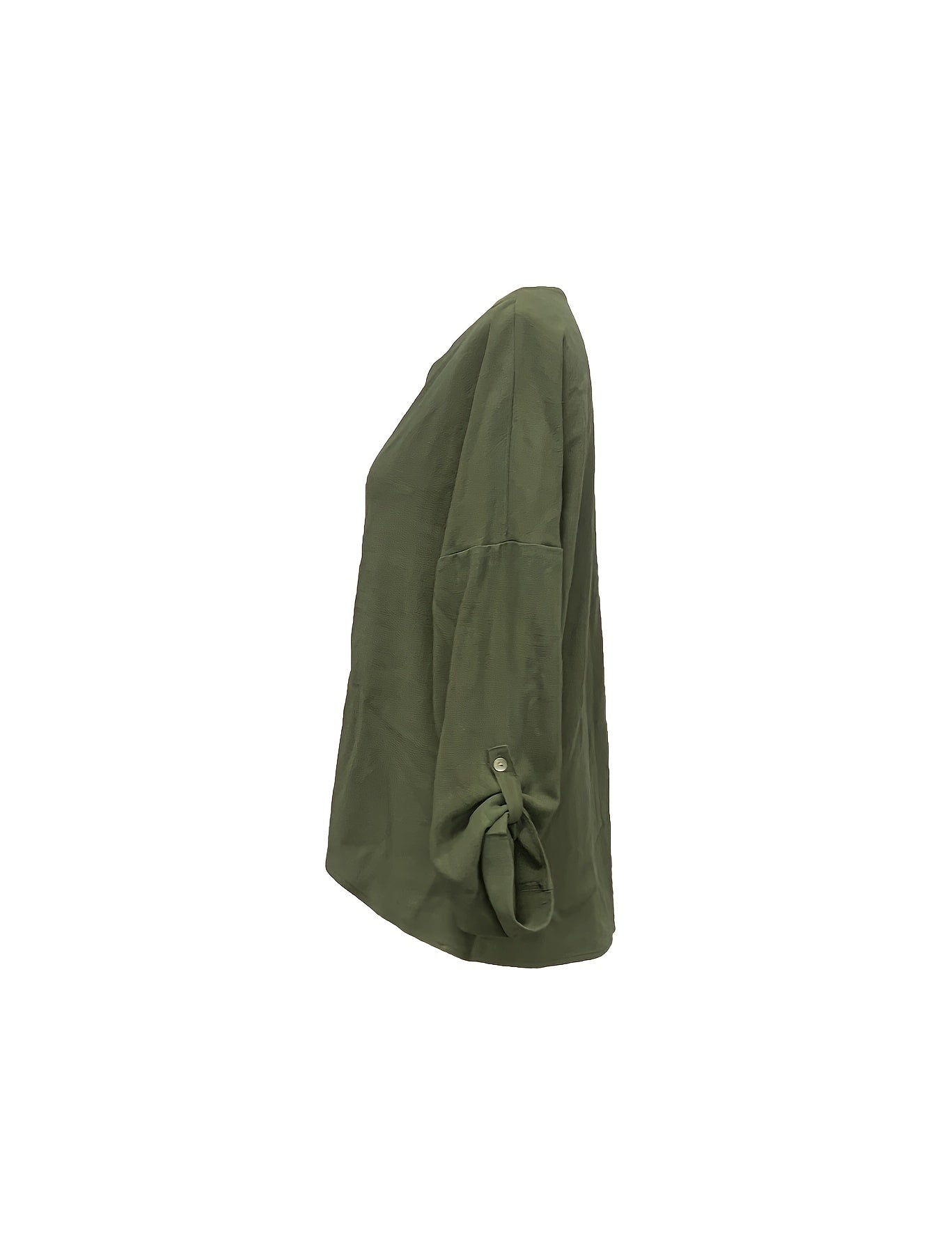 Zachowaj chłód i styl tego lata dzięki naszej zielonej koszuli o lnianym wyglądzie. Wykonana z wysokiej jakości poliestru, ta lekka i oddychająca bluzka oferuje idealne połączenie komfortu i elegancji. Luźny krój i miękki materiał sprawiają, że jest idealna na ciepłe dni, a dekolt w kształcie litery V dodaje jej wyrafinowania.