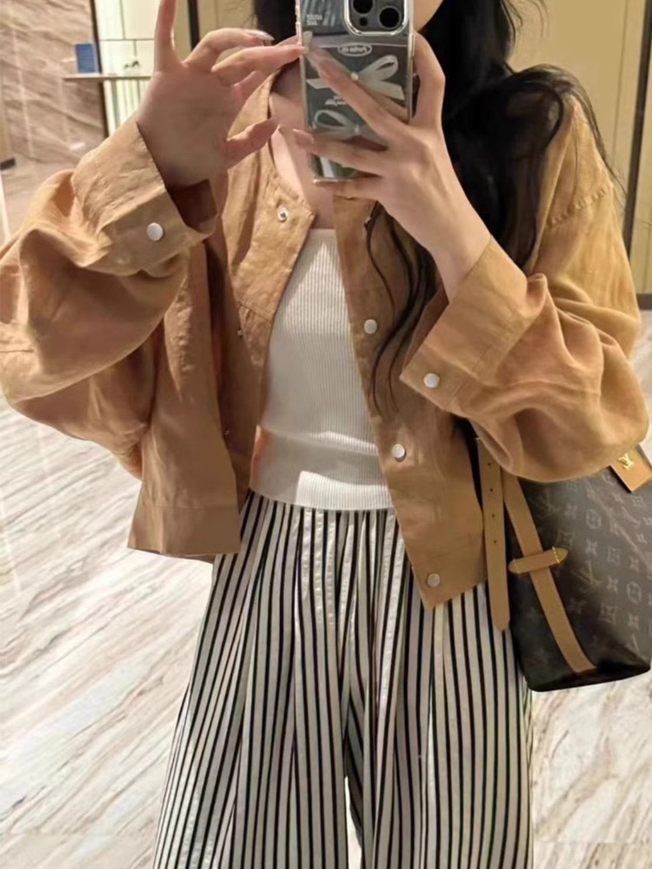 Koszula lniana vintage – letnia bluzka z krótkim rękawem, wykonana z mieszanki lnu, zapinana na guziki