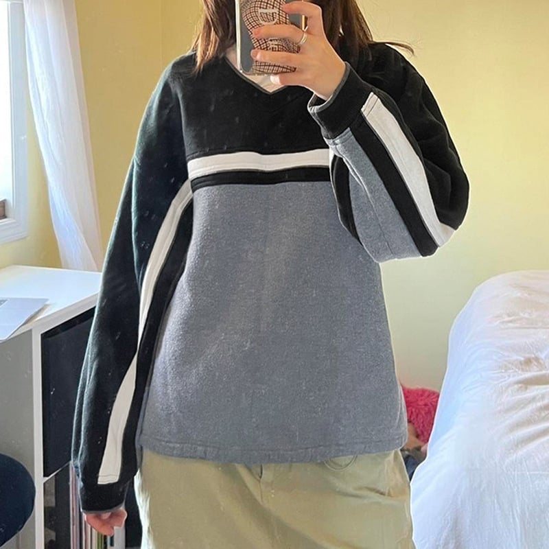 Luźna Bluza z Kapturem w Kontrastowych Kolorach | Idealna na Wiosnę i Jesień