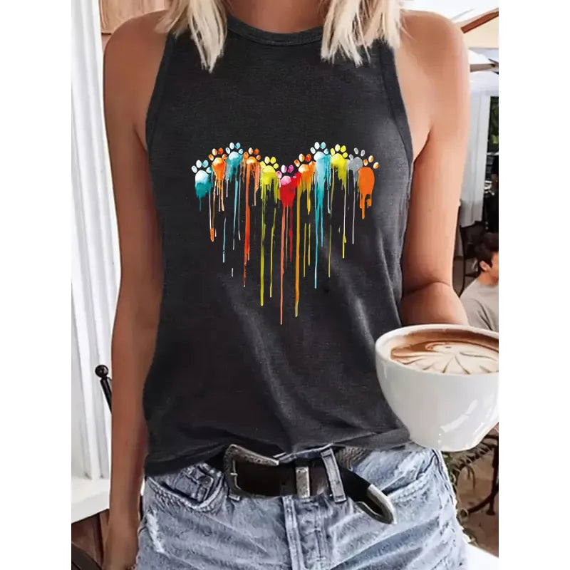 Marleni – Tank tank z okrągłym dekoltem i nadrukiem łap – zabawny i swobodny styl