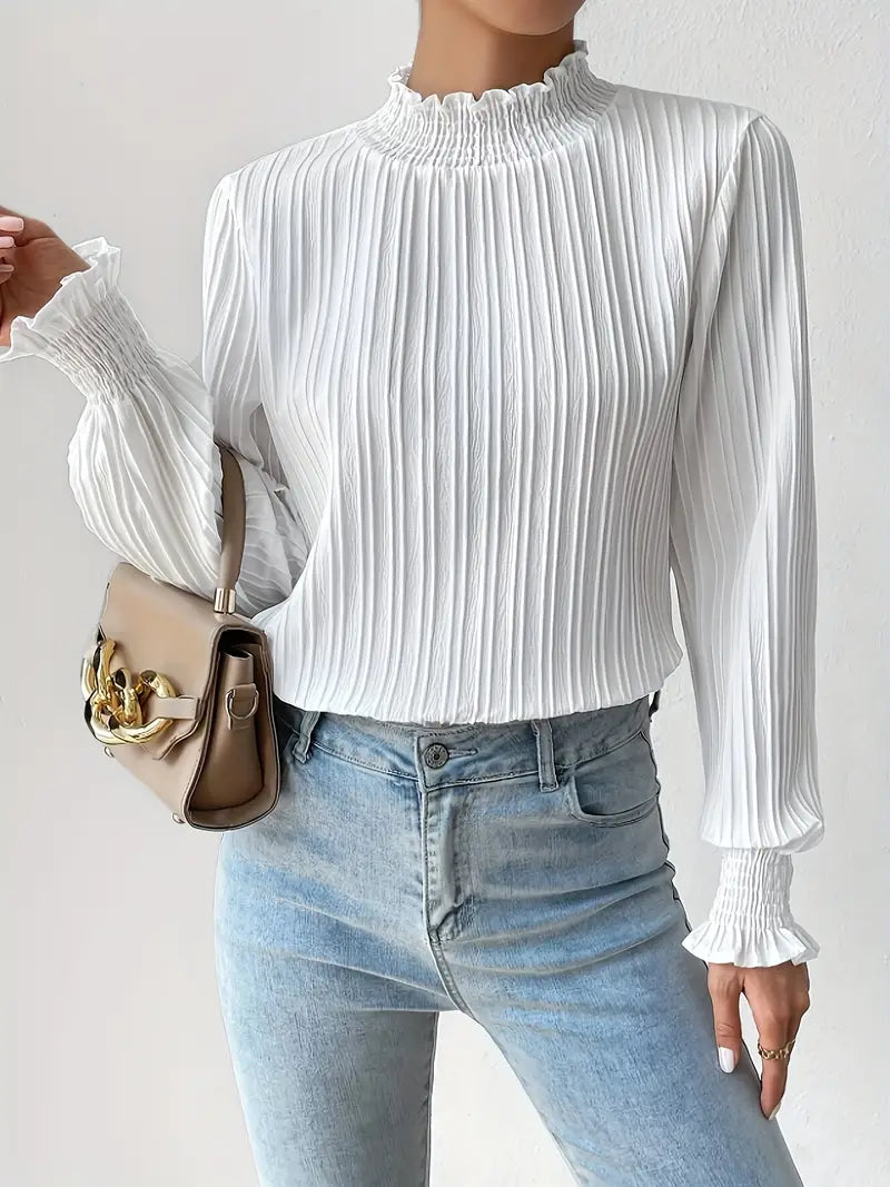 Bluzka Mockneck z falbanami i rękawami w kształcie lampionów, elegancko teksturowana