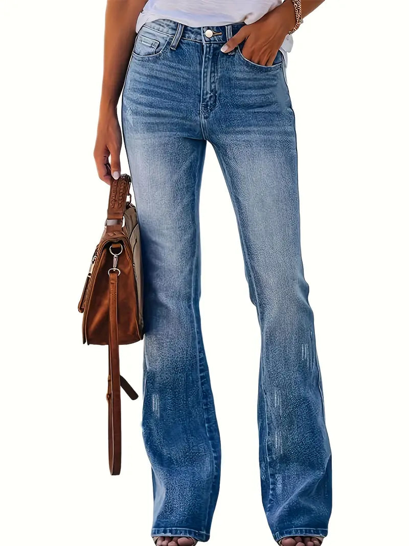 Heike - Rozciągliwe, rozszerzane spodnie jeansowe Vintage Vibes z wysokim stanem i rozszerzanymi nogawkami