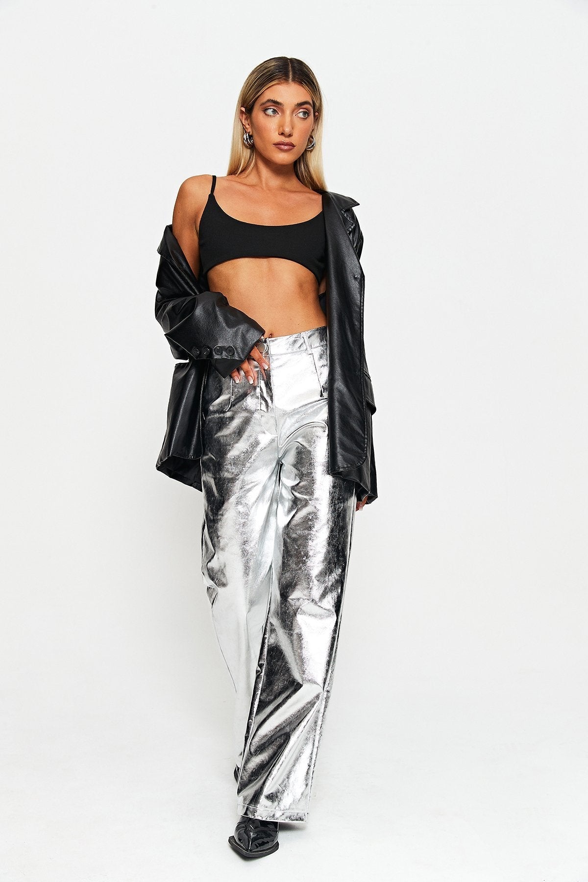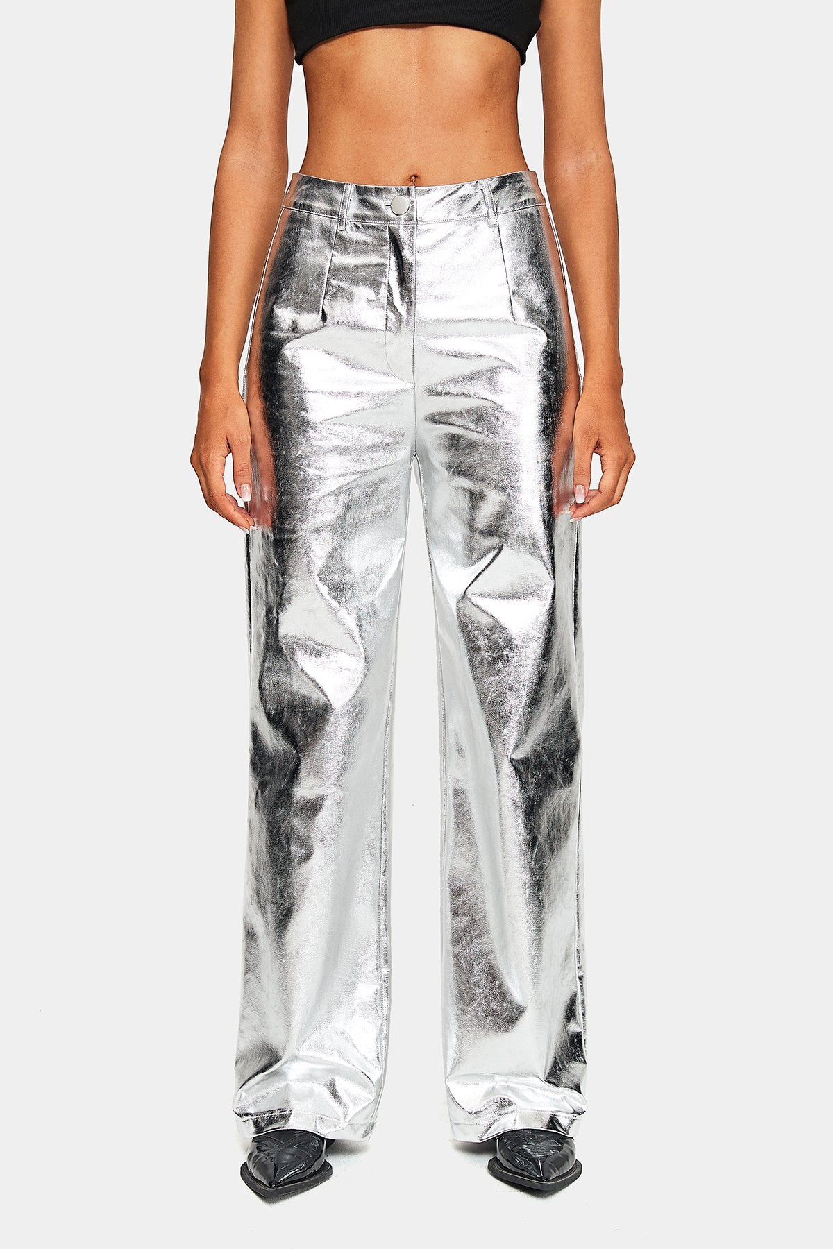 Nylah | Metaliczne spodnie z prostą nogawką
