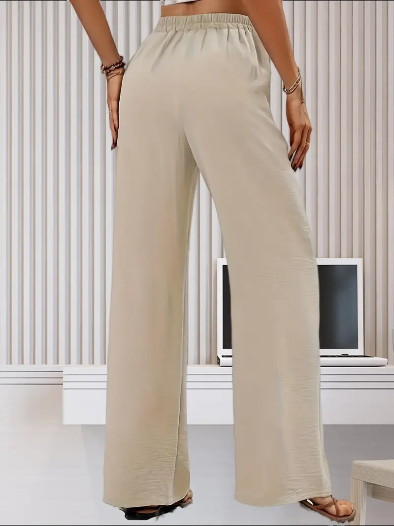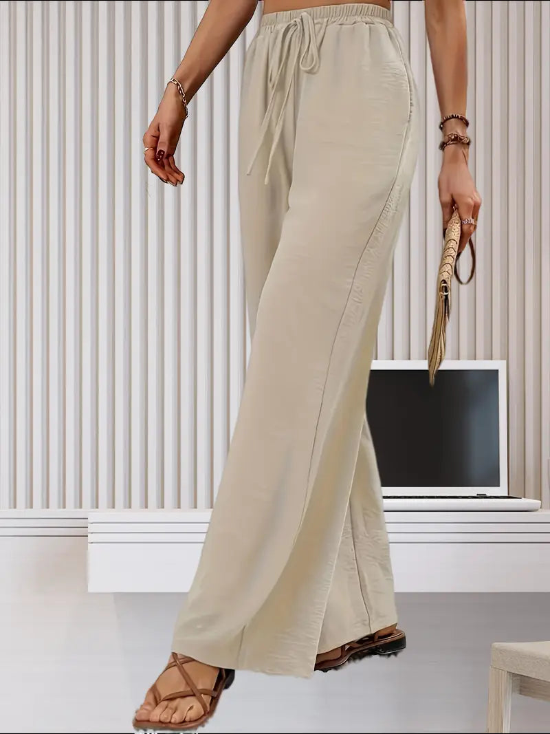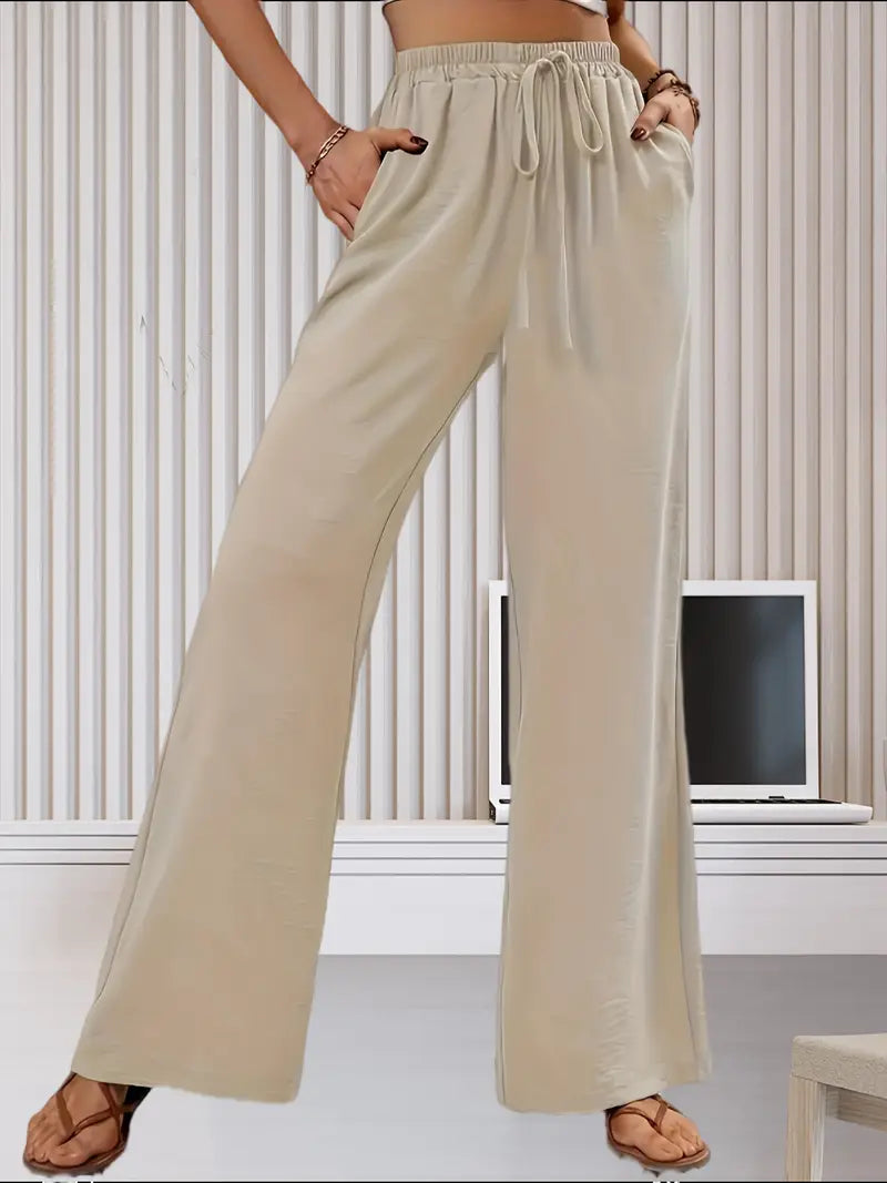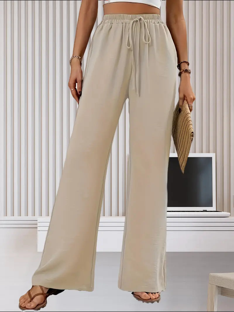 Te lekkie, lniane spodnie z szerokimi nogawkami zapewniają najwyższy komfort noszenia. Zaprojektowane z luźnym krojem i stylową talią ze sztucznym sznurkiem, spodnie te oferują idealną równowagę między elegancją i wygodą. Idealne na swobodne wyjścia, wakacje lub do noszenia na co dzień, zapewniają przewiewność i płynną sylwetkę, zapewniając szykowny, ale swobodny wygląd.