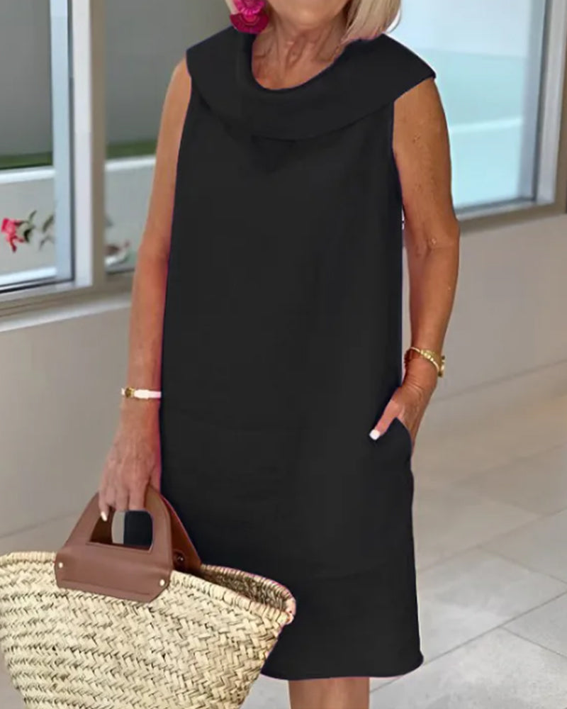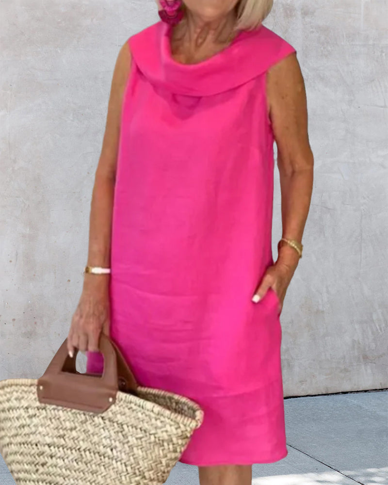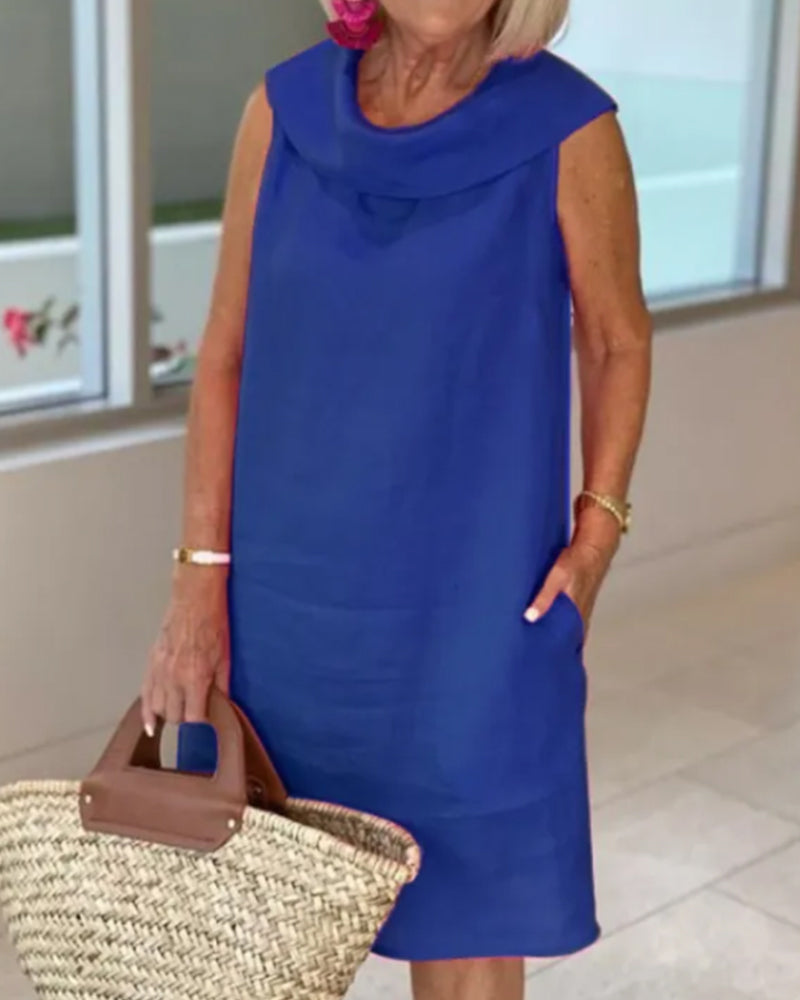 Przyciągająca wzrok gładka sukienka wykonana z bawełny i lnu