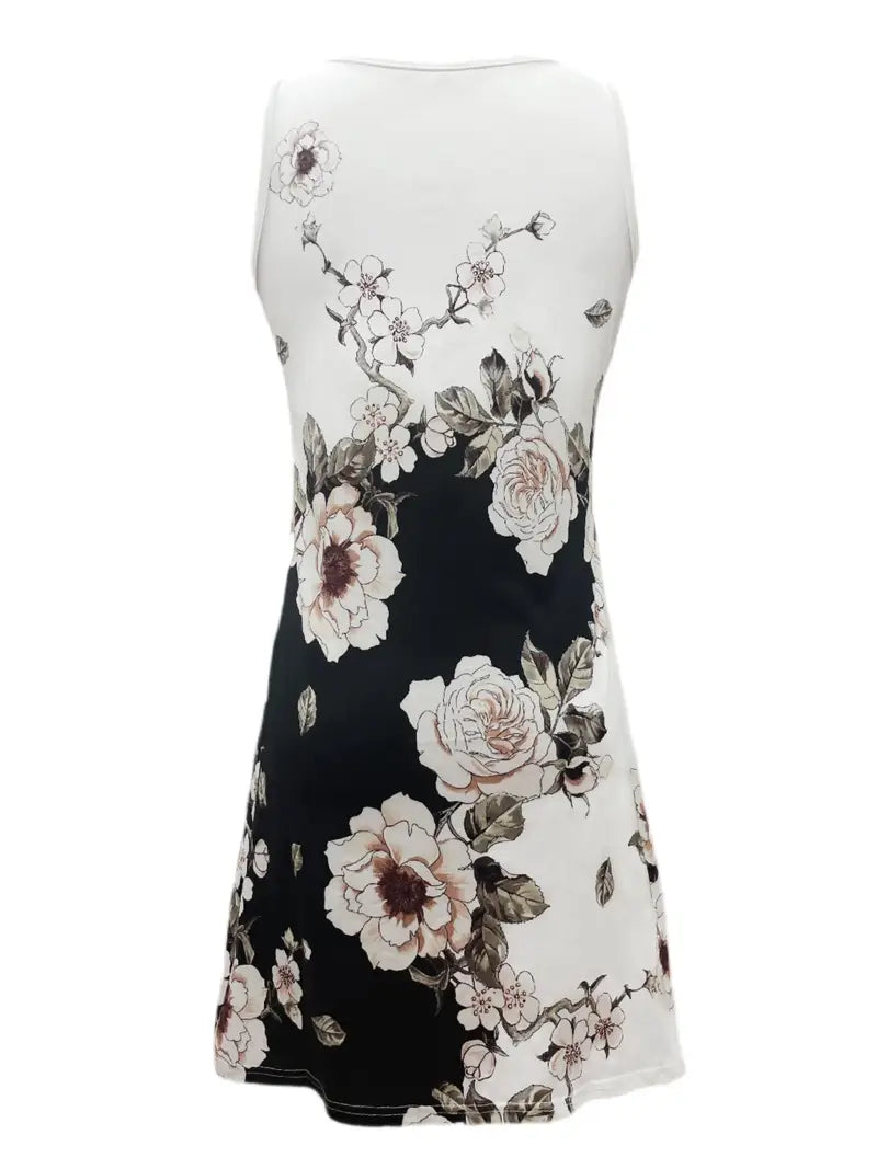 Biała sukienka w kwiaty Damska mini sukienka bez rękawów o linii A z klamrą