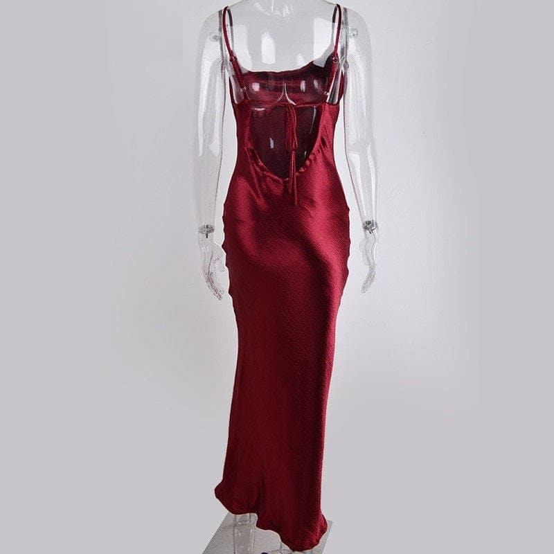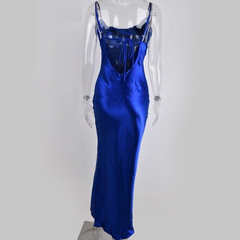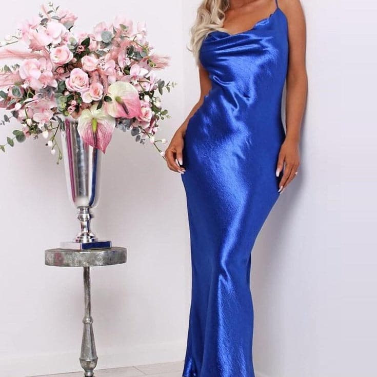 Jedwabna delikatnie opływająca kobiecą figurę sukienka do kostek przyciąga uwagę pięknym materiałem i niezwykłą kolorystyką. Głęboko wycięte plecy podkreślają ich kształt i dodatkowo je wysmuklają. Delikatne przewiązanie stanowi ich ozdobę. Zaokrąglony oraz głęboki dekolt nieznacznie podkreśla biust. Błyszcząca Długa Sukienka przylega do bioder, delikatnie zwężając się ku dołowi do pozwala na wysmuklenie figury. Fason doskonale sprawdza się w czasie ważnych wyjść. Kolorystyka pozwala na dobranie modelu odpowiedniego do swojego typu urody i charakteru.