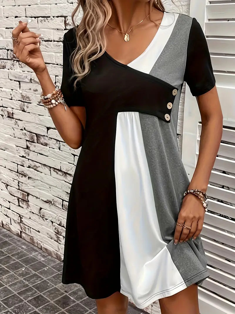 Casualowa letnia sukienka z krótkim rękawem - wygodna luźna sukienka w kształcie litery A