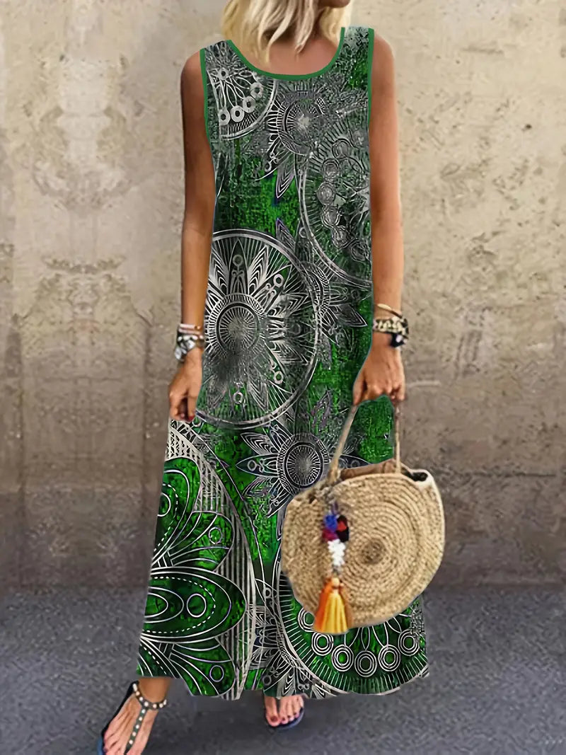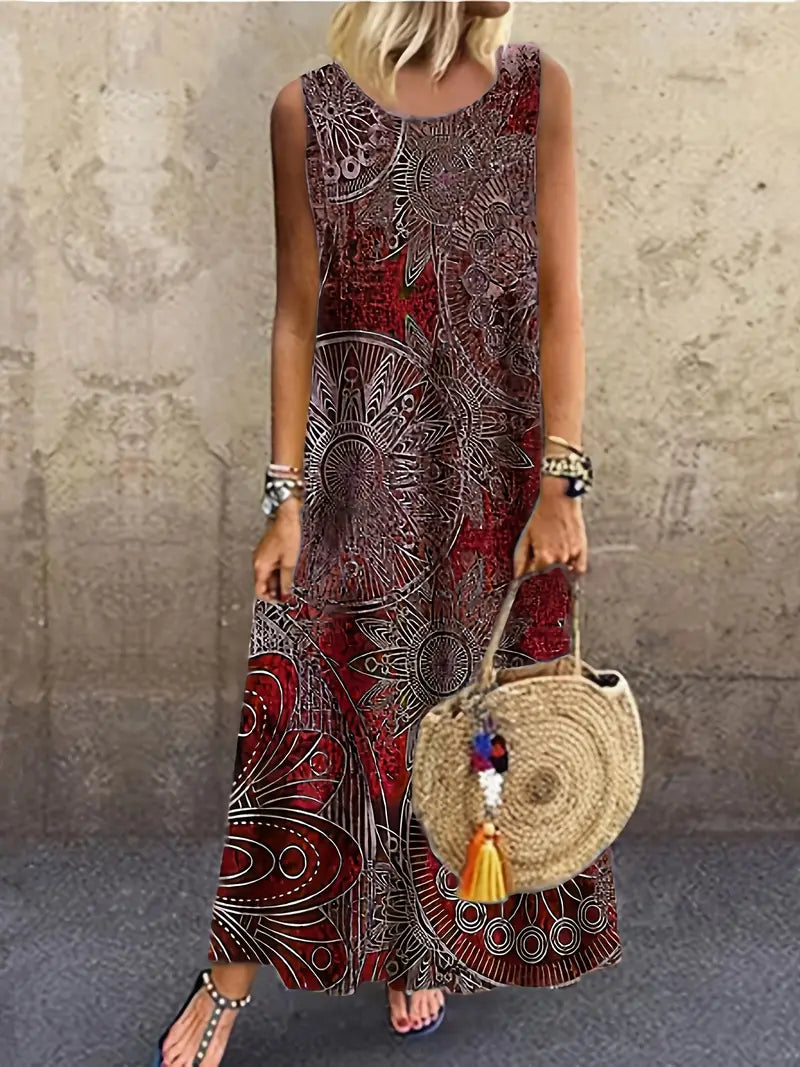 Casualowa sukienka bez rękawów z nadrukiem Paisley Przewiewna i modna