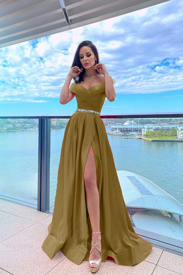 Długa suknia wieczorowa bez rękawów z trenem została zaprojektowana z myślą o uroczystych okazjach i wyjątkowych wydarzeniach. Wykonana z wysokiej jakości poliestru, zapewnia gładką i płynnie układającą się sylwetkę. Dopasowanie w talii podkreśla figurę, a długość do ziemi z elegancko opadającym trenem dodaje szyku i klasy. Krój bez rękawów zapewnia komfort i subtelną elegancję, czyniąc tę suknię idealnym wyborem na bankiety, gale i wieczorowe przyjęcia. Dostępna w różnych rozmiarach, gwarantuje wyrafinowany i dopracowany wygląd.