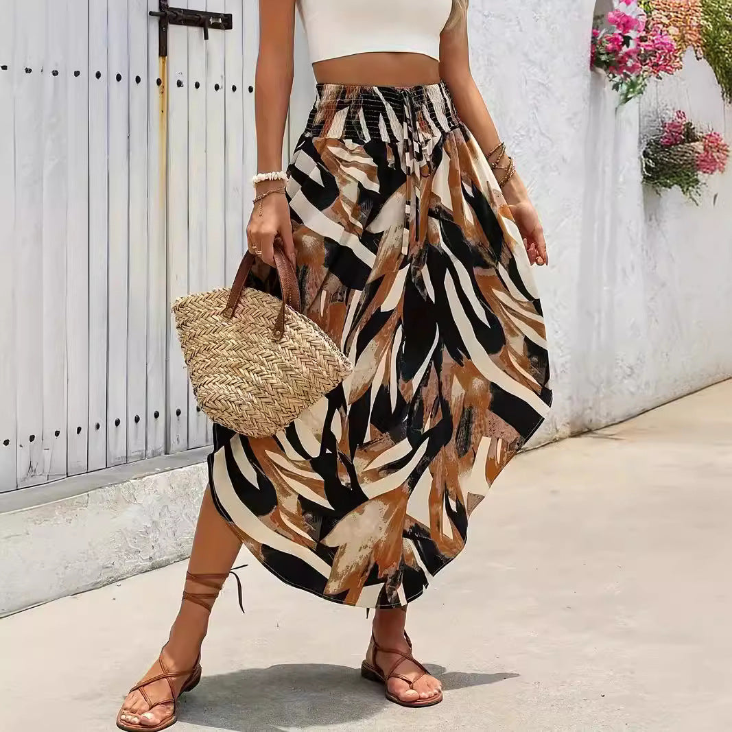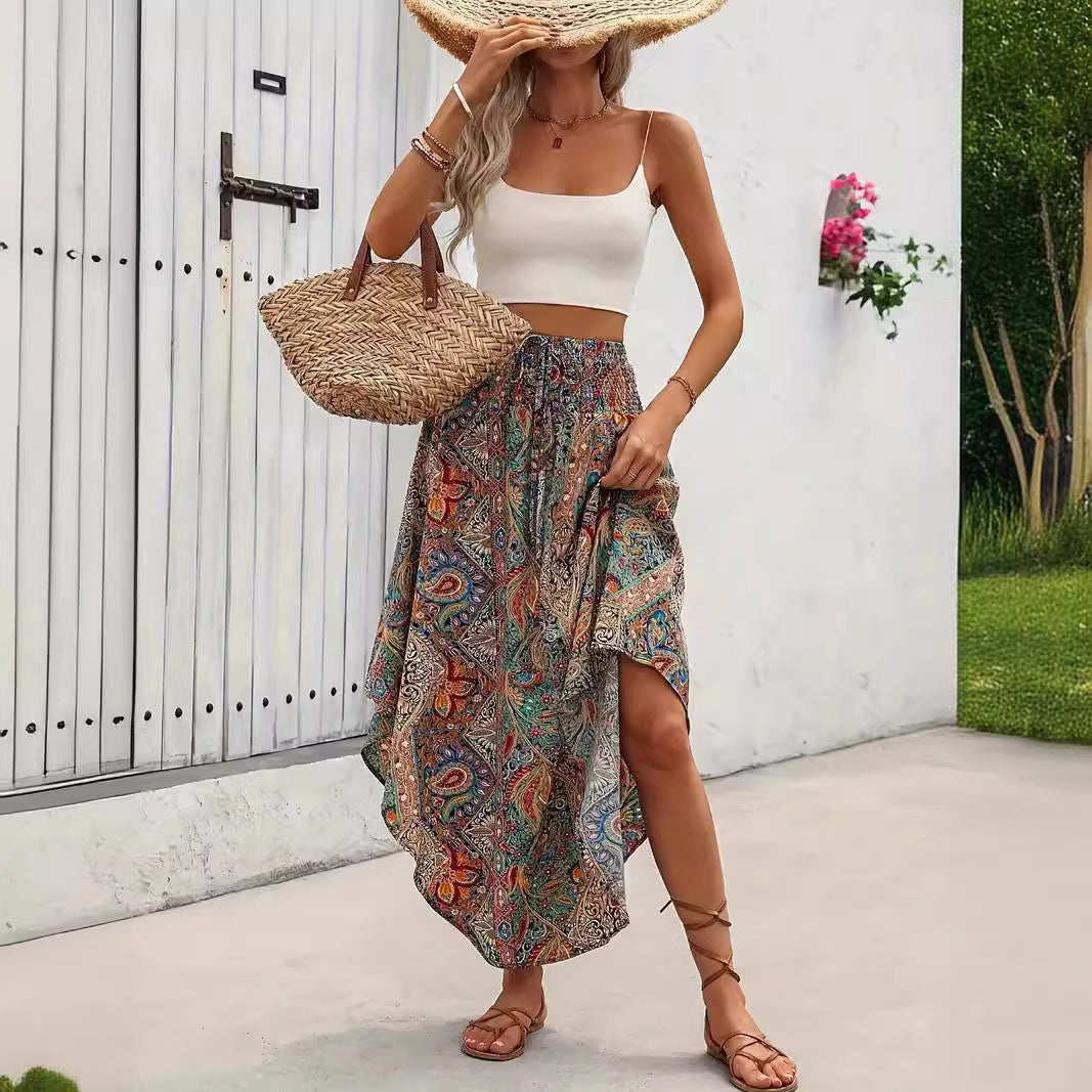 Drukowana Spódnica A-Liniowa Średniej Długości z Wiązaniem | Idealna na Wiosnę i Jesień
