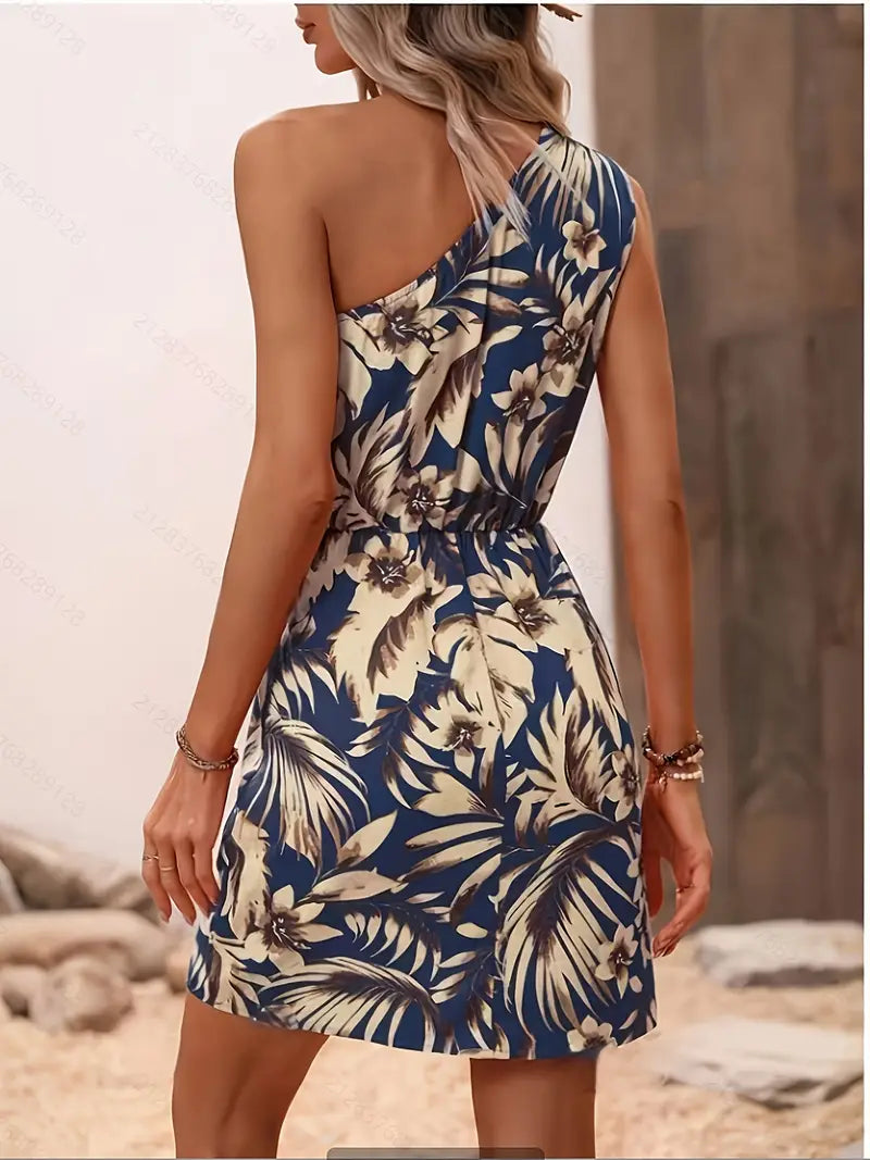 Elegancka letnia sukienka na jedno ramię - bez rękawów, przewiewna i idealna na plażę lub taras