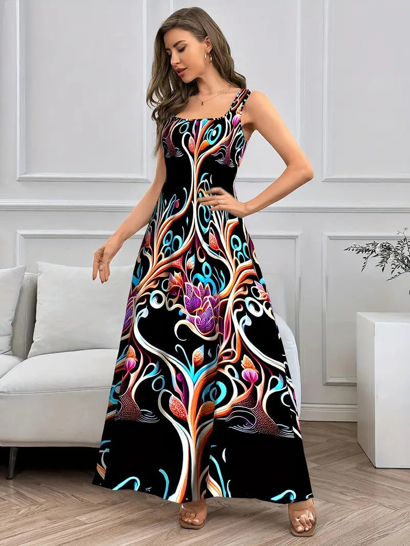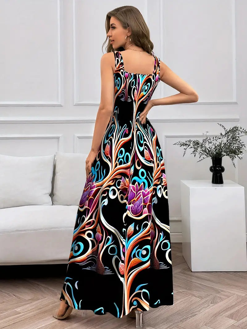 Elegancka sukienka maxi - kwiatowy nadruk, kwadratowy dekolt i przewiewny krój - idealna na lato