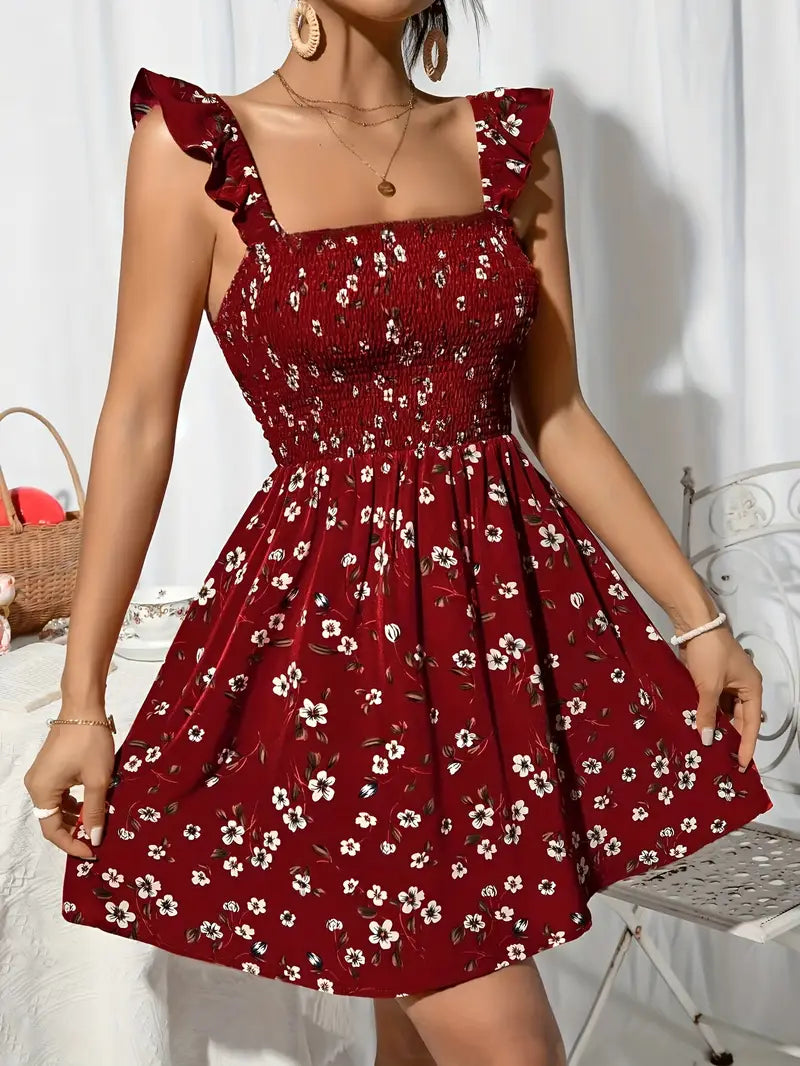 Wzbogać swoją letnią garderobę o tę stylową czerwoną sukienkę o linii A z kwiatowym nadrukiem na ramiączkach. Zaprojektowana z myślą o wygodzie i elegancji, jest idealna na ciepłe dni, wakacje i swobodne okazje.