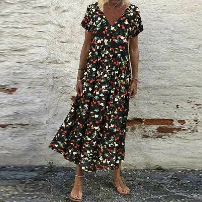Kwiatowy wzór – dodaje sukience romantycznego i kobiecego uroku.