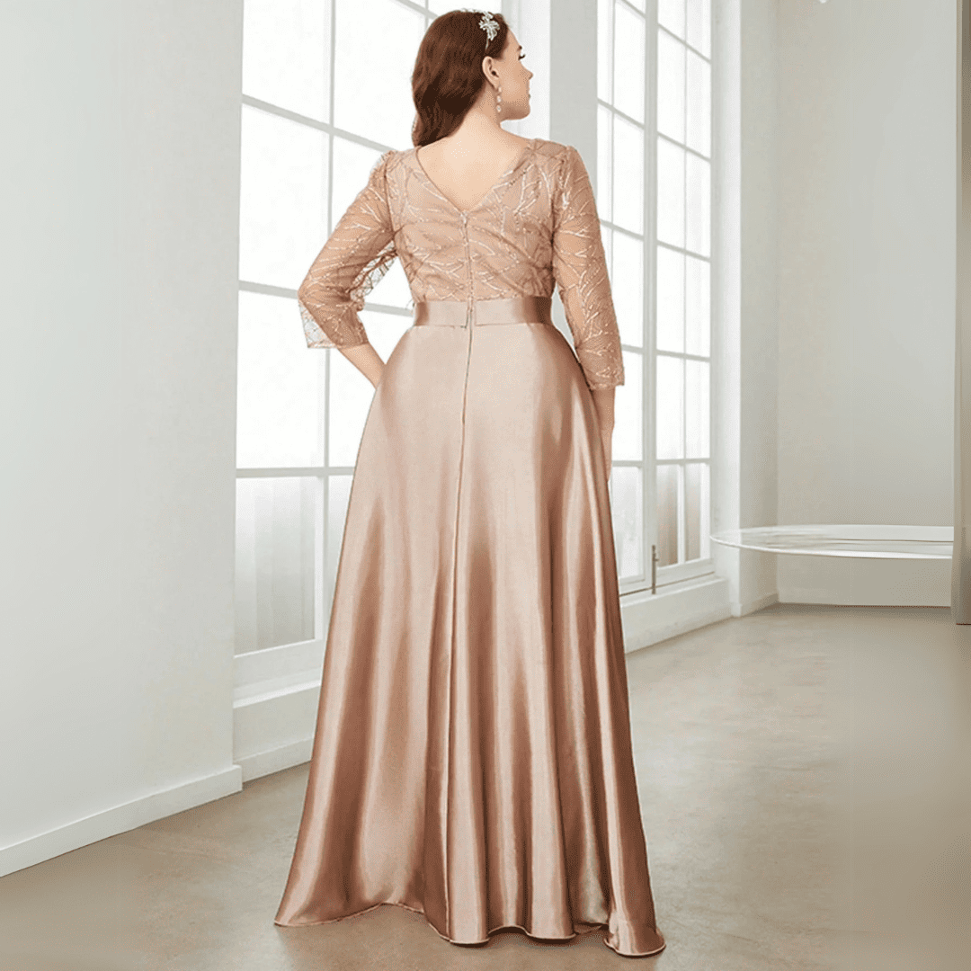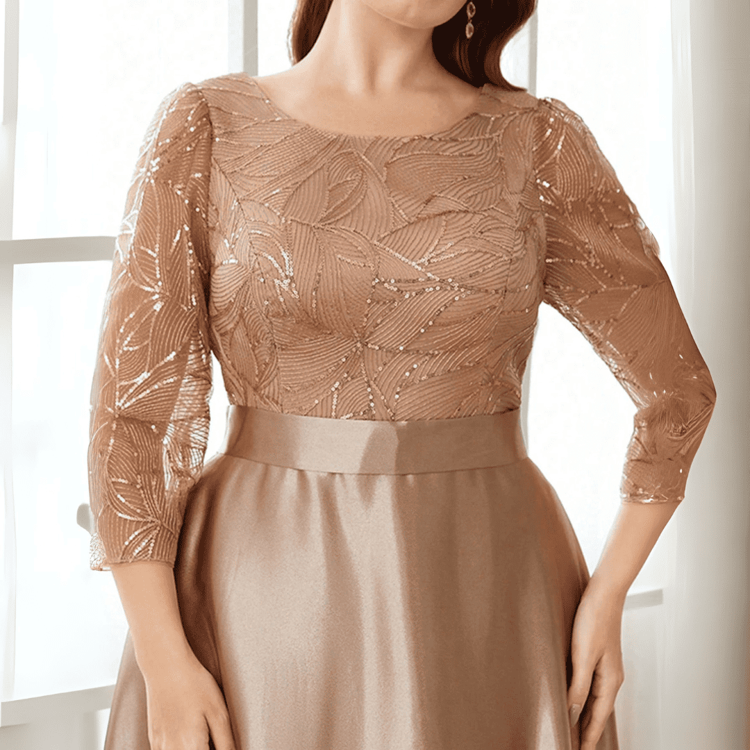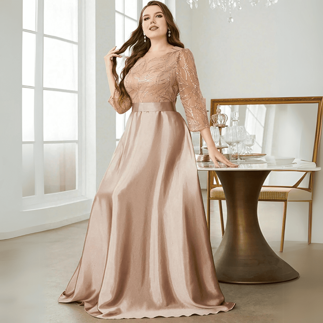 Zachwyć wszystkich swoim wyjątkowym stylem w tej olśniewającej sukni ślubnej z długimi rękawami. Klasyczny dekolt O i efektowne aplikacje podkreślają Twoją elegancję, podczas gdy satynowy materiał w kolorze szampańskim dodaje luksusowego wyrazu. Idealna na wieczorne przyjęcia i niezapomniane chwile!