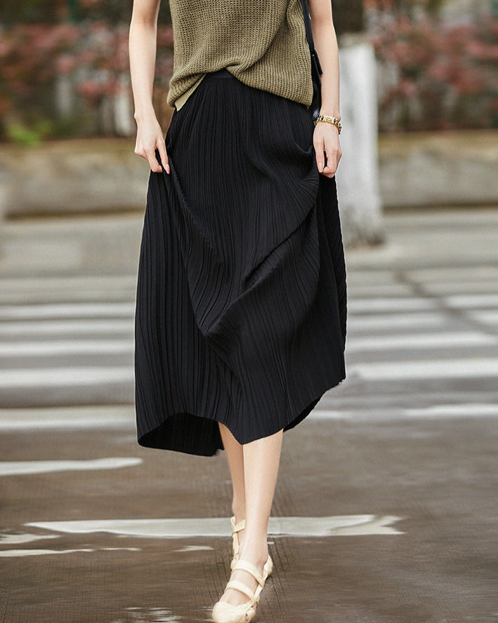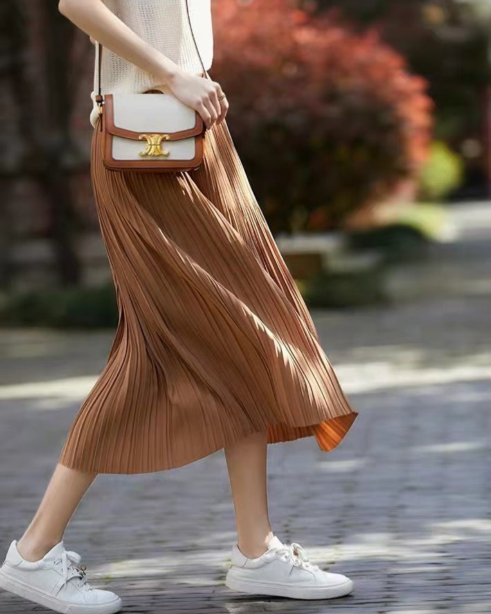 Jednokolorowa Plisowana Spódnica Średniej Długości | Idealna na Wiosnę i Jesień