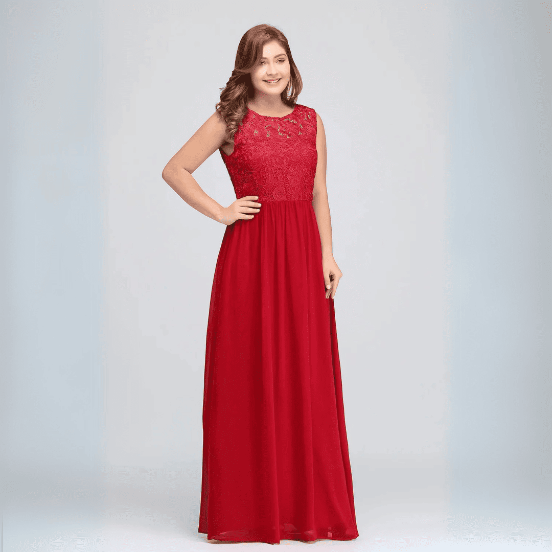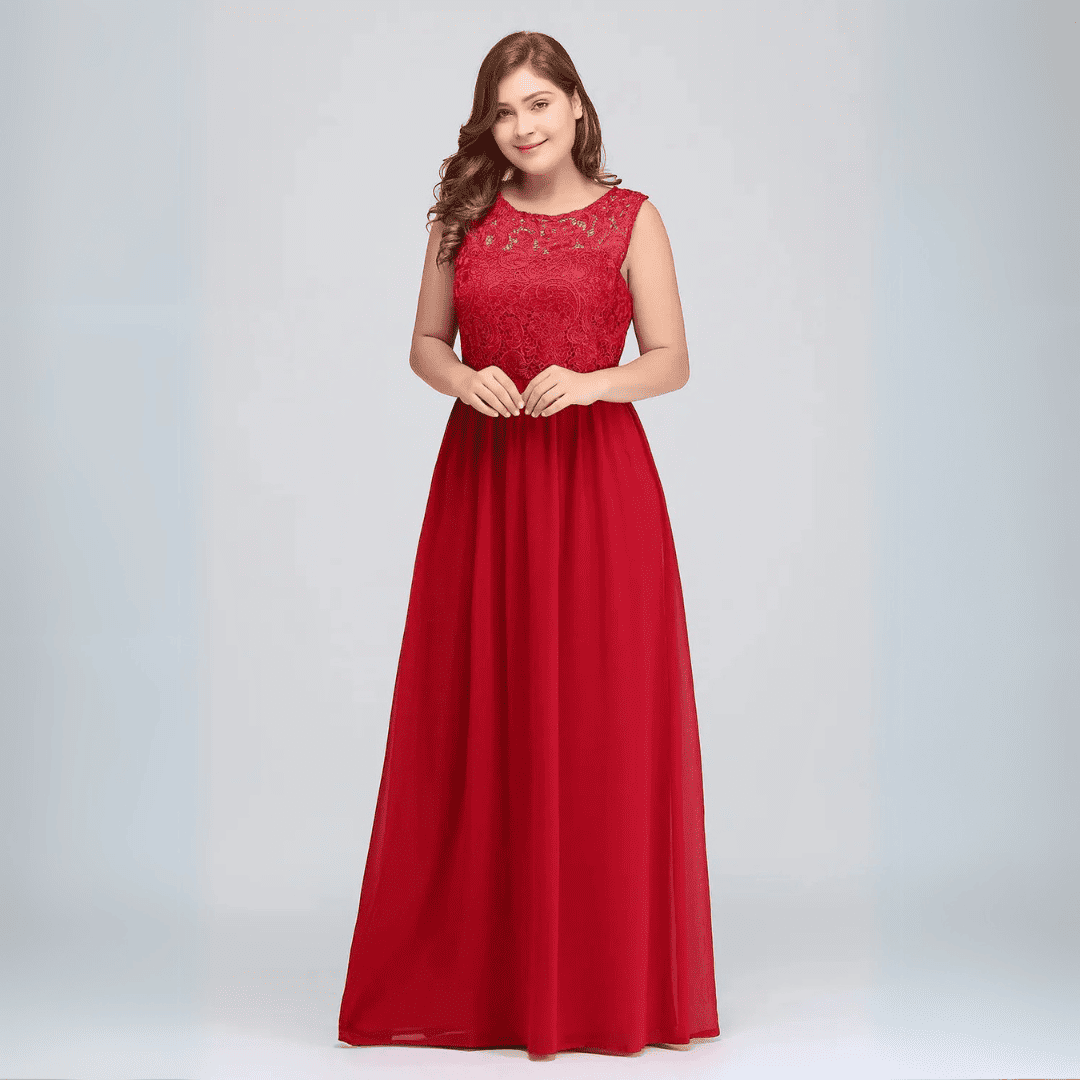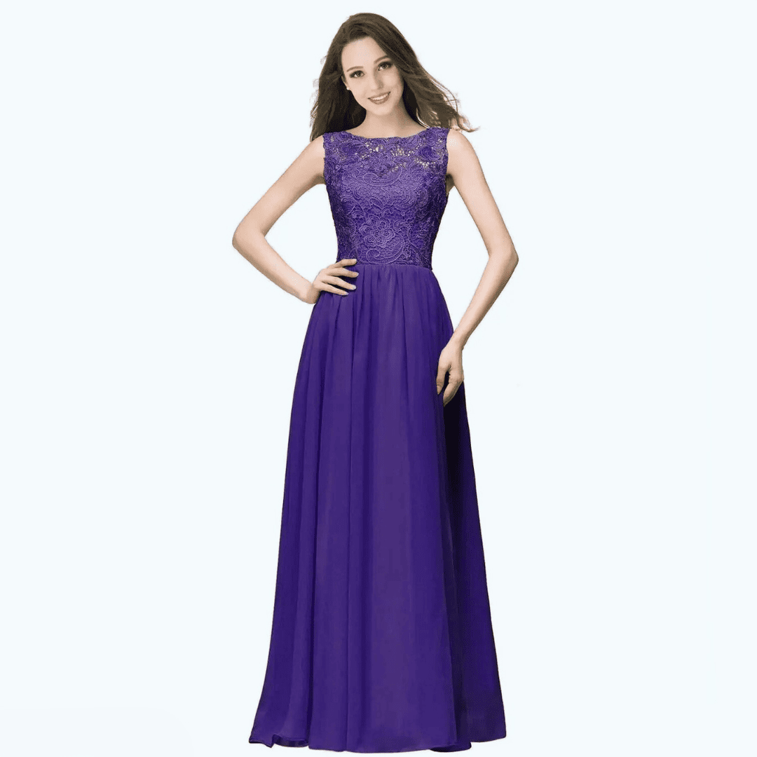Odkryj magię elegancji z sukienką Judyta, zaprojektowaną z myślą o druhnach, które chcą wyglądać olśniewająco. Ten bezrękawnikowy, plus size model w stylu A-line łączy w sobie klasyczny dekolt O-neck z subtelnym tyłem bez pleców, oferując jednocześnie wygodę dzięki wbudowanemu biustonoszowi. Wykonana z połyskującego granatowego szyfonu i delikatnie zdobiona koronką, tworzy romantyczny i wyrafinowany efekt. Długość do ziemi dopełnia stylizacji i dodaje królewskiego uroku.
