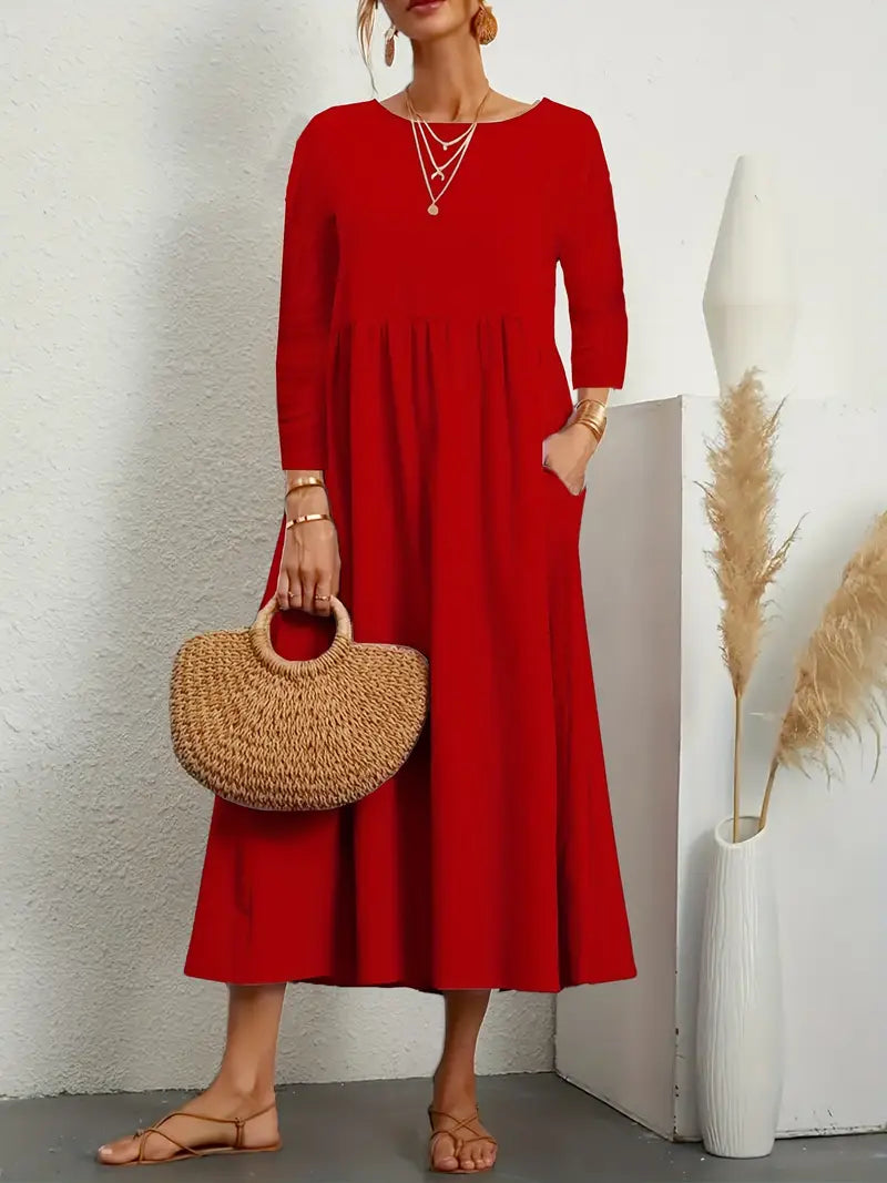 Ta klasyczna sukienka z długimi rękawami i kieszeniami to stylowy styl bez wysiłku. Zaprojektowana z myślą o kobietach w dużych rozmiarach, ta swobodna sukienka z okrągłym dekoltem oferuje luźny krój, idealny na wiosnę i jesień. Jednolity kolor sprawia, że jest uniwersalna zarówno na co dzień, jak i na eleganckie okazje, a praktyczne kieszenie zapewniają dodatkową wygodę.