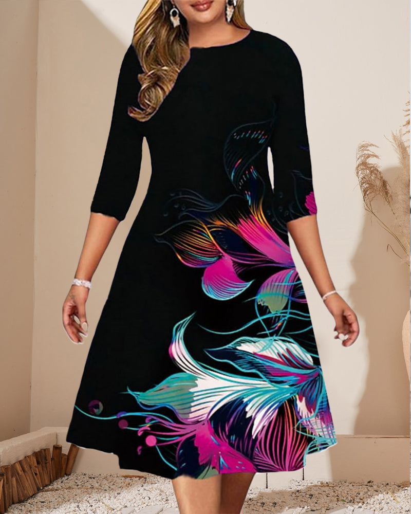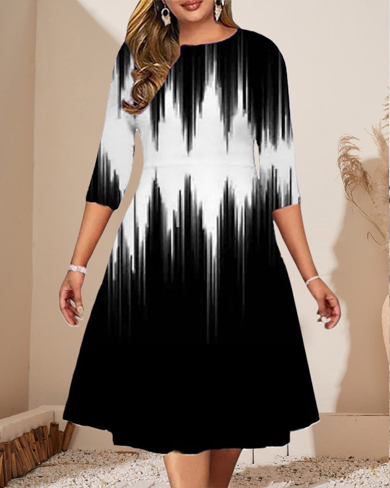 Sukienka z półrękawem, okrągłym dekoltem i nadrukiem