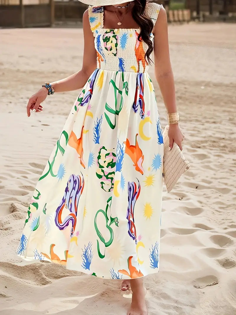 Letnia sukienka - Cartoon Animal Print, bez rękawów, przewiewna i elegancka z elastycznymi ramiączkami