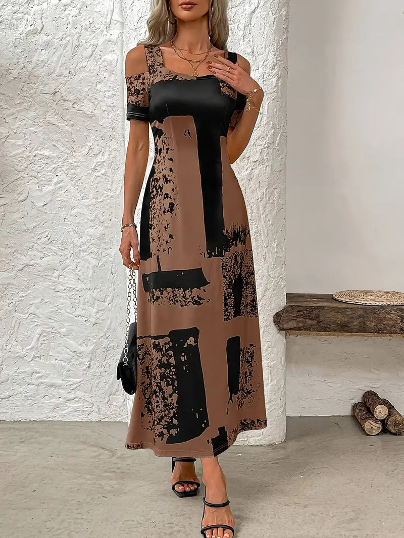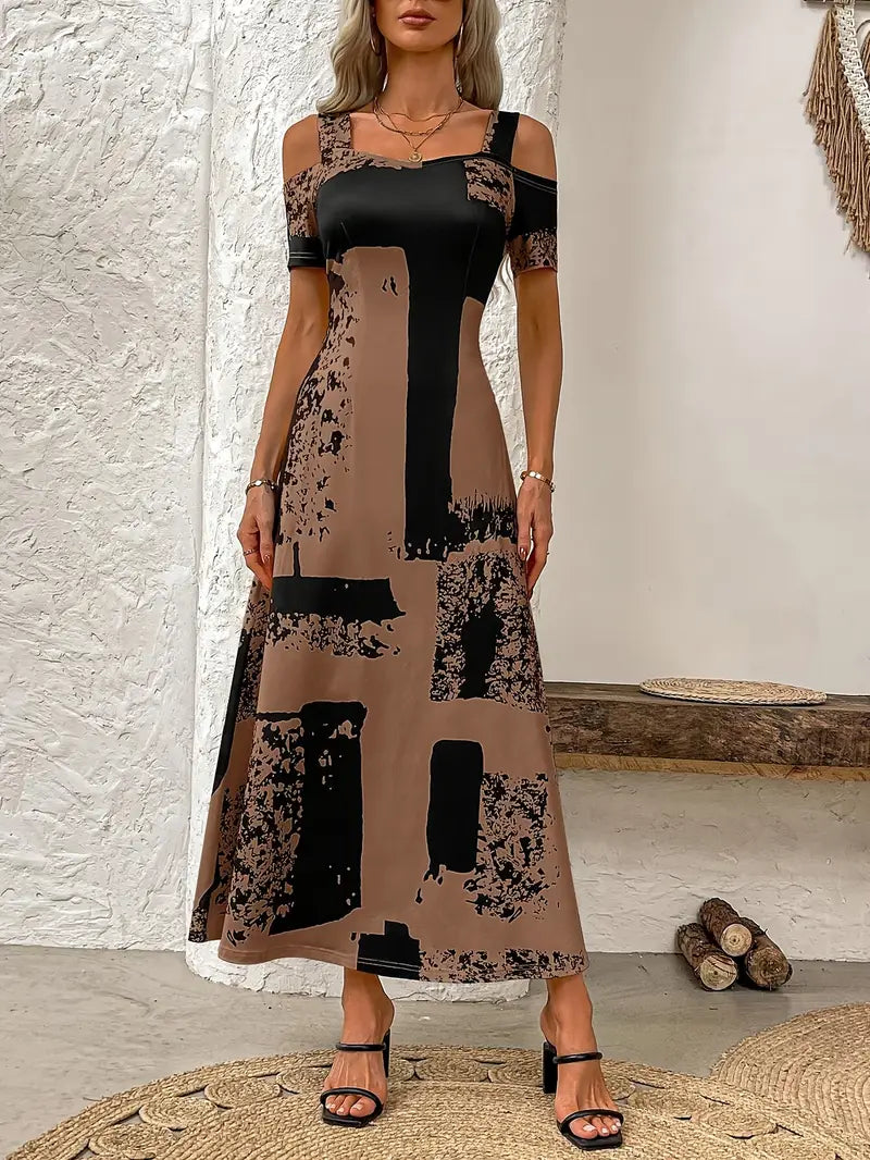 Letnia sukienka damska - kwadratowy dekolt, krótkie rękawy, przewiewna i wygodna na wakacje