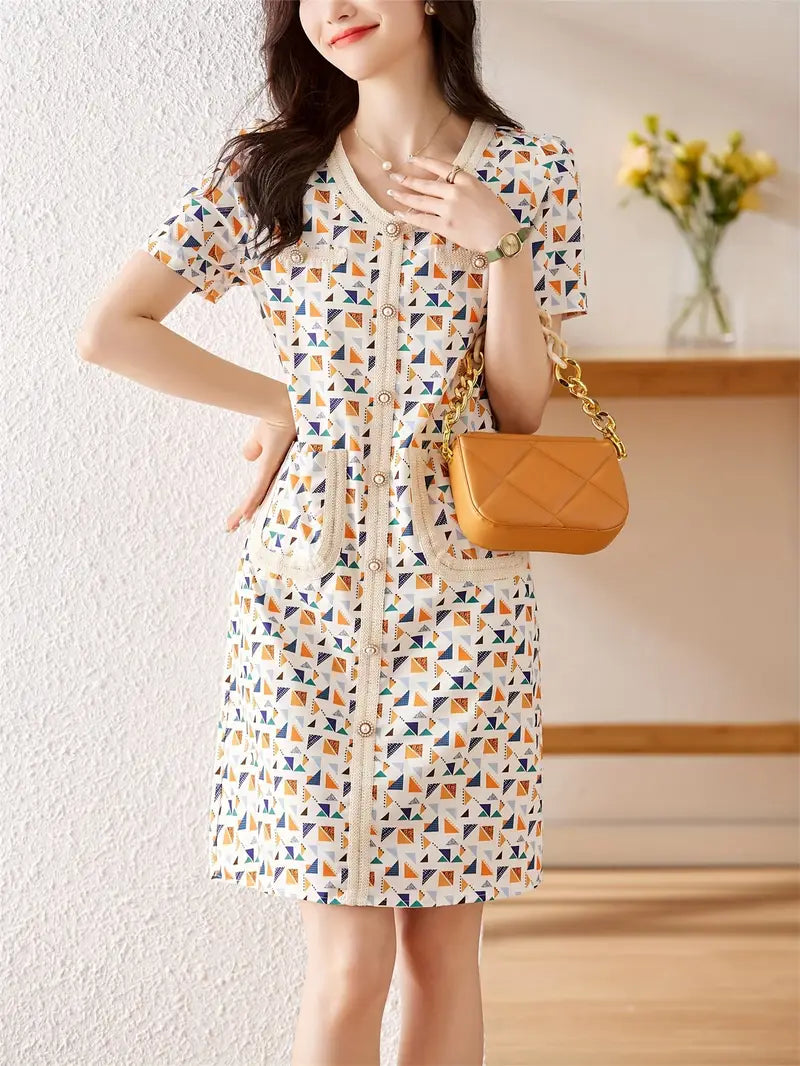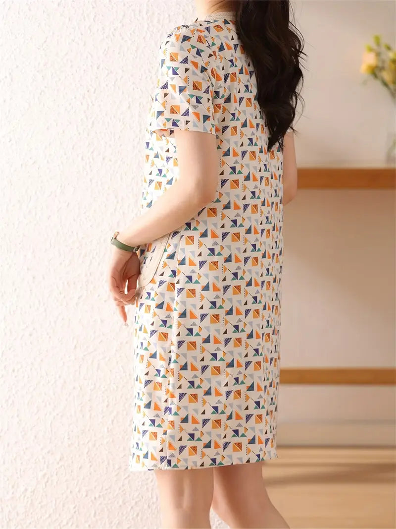 Letnia sukienka damska - przewiewny kwiatowy nadruk, krótkie rękawy i elegancki krój