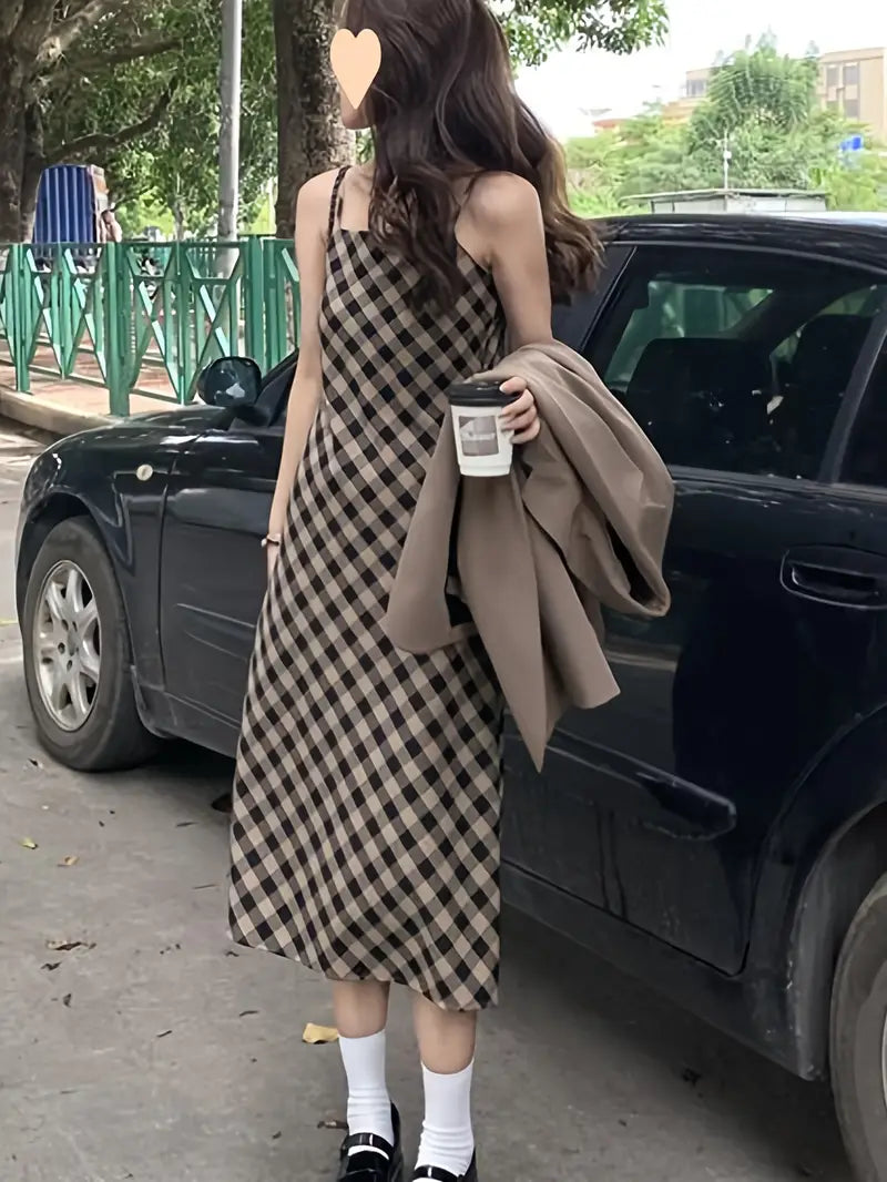 Letnia sukienka w kratę dla kobiet - bez rękawów, szykowna, elegancka, swobodna i wygodna