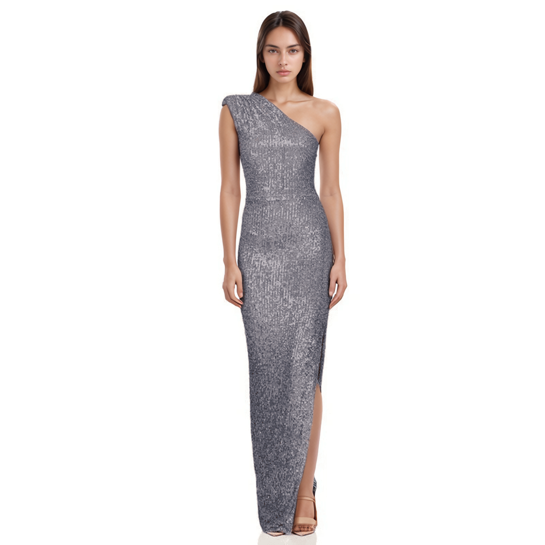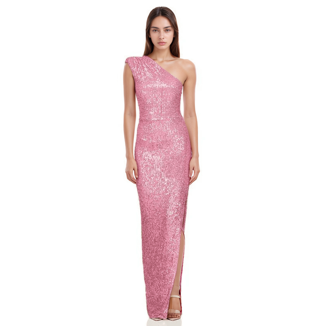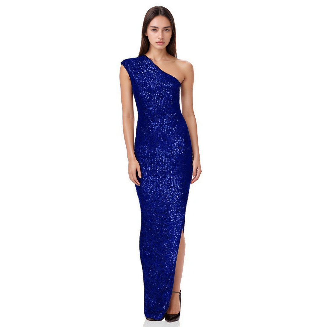 Wejdź w centrum uwagi dzięki naszej oszałamiającej sukni na jedno ramię, zaprojektowanej tak, aby każda chwila była niezapomniana. Wyposażona w lśniące cekiny, odważne rozcięcie z boku i ponadczasowy, sięgający kostek krój, ta suknia jest idealna na studniówki, imprezy taneczne lub każdą wyjątkową okazję, gdzie elegancja spotyka się z urokiem.