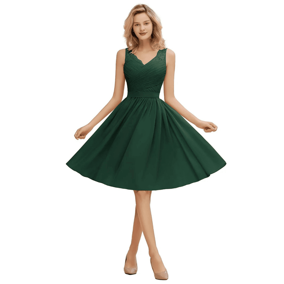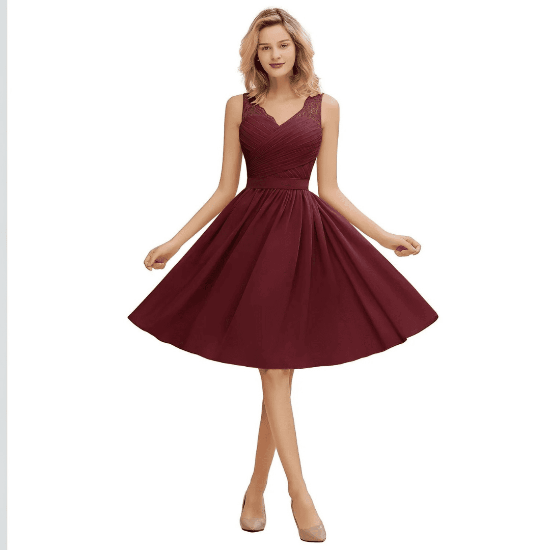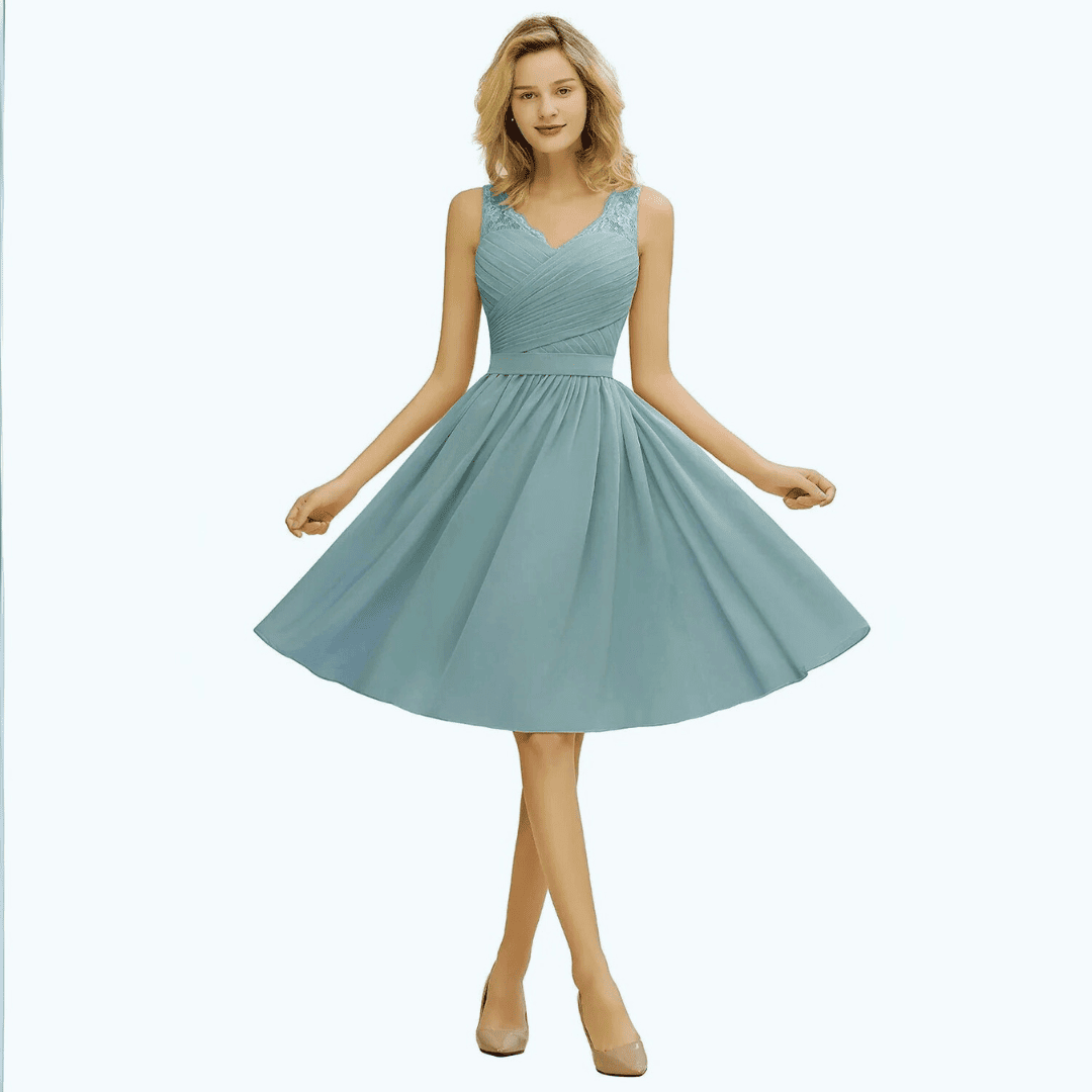 Krótka sukienka Marianna z szyfonu w kolorze pudrowego różu to idealny wybór na wesela. Zmysłowy dekolt w kształcie litery V, bez rękawów, uzupełniony paskiem zapewnia elegancki, dopasowany wygląd. Długość do kolan gwarantuje wygodę i swobodę ruchów.