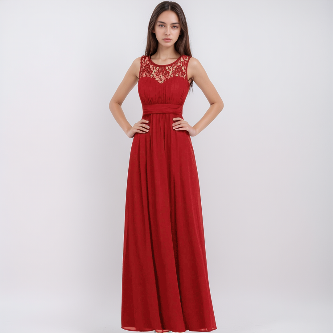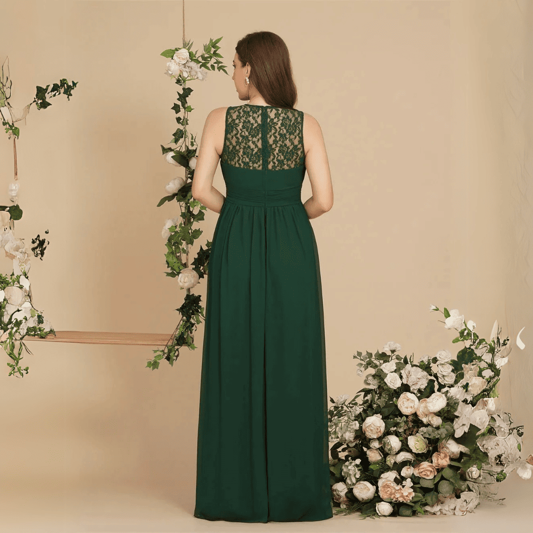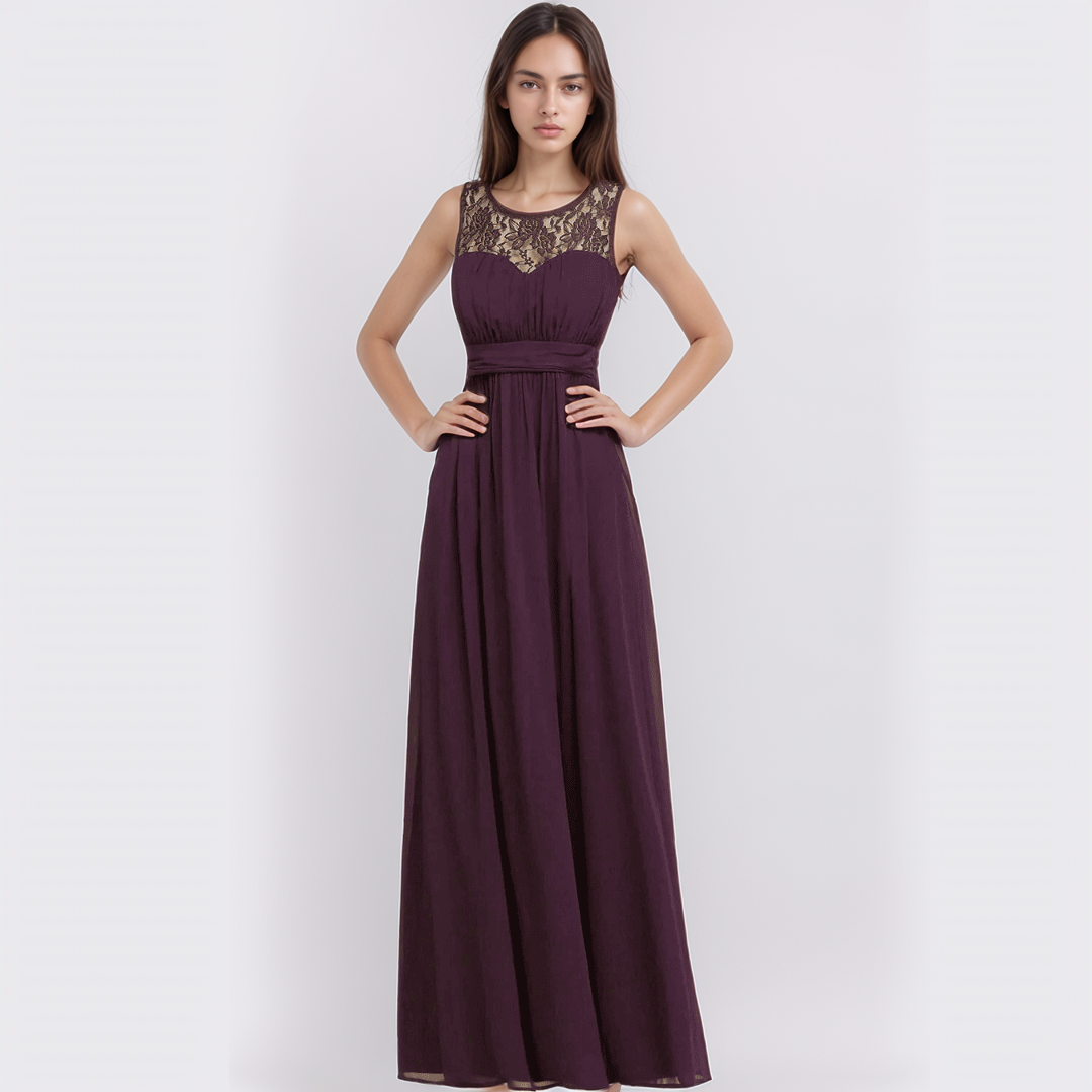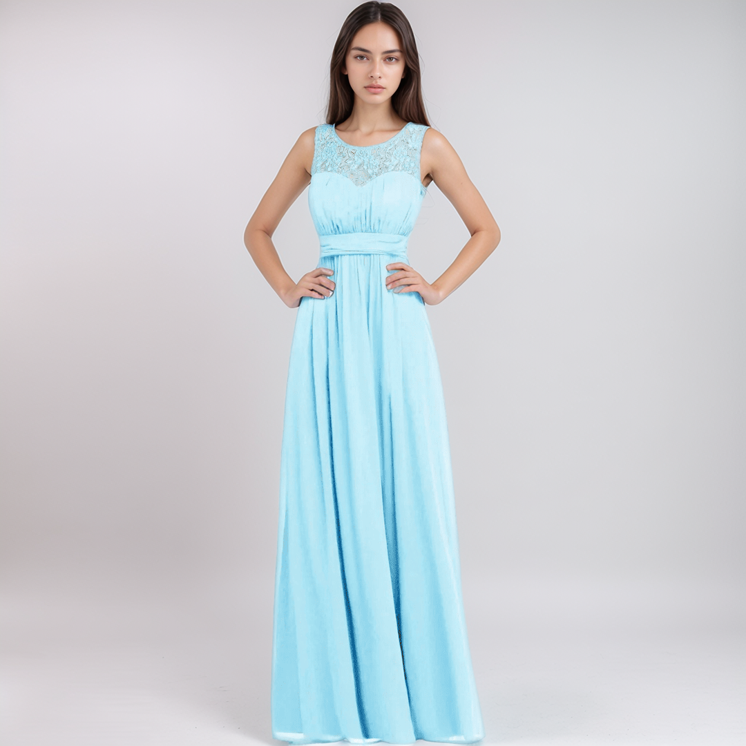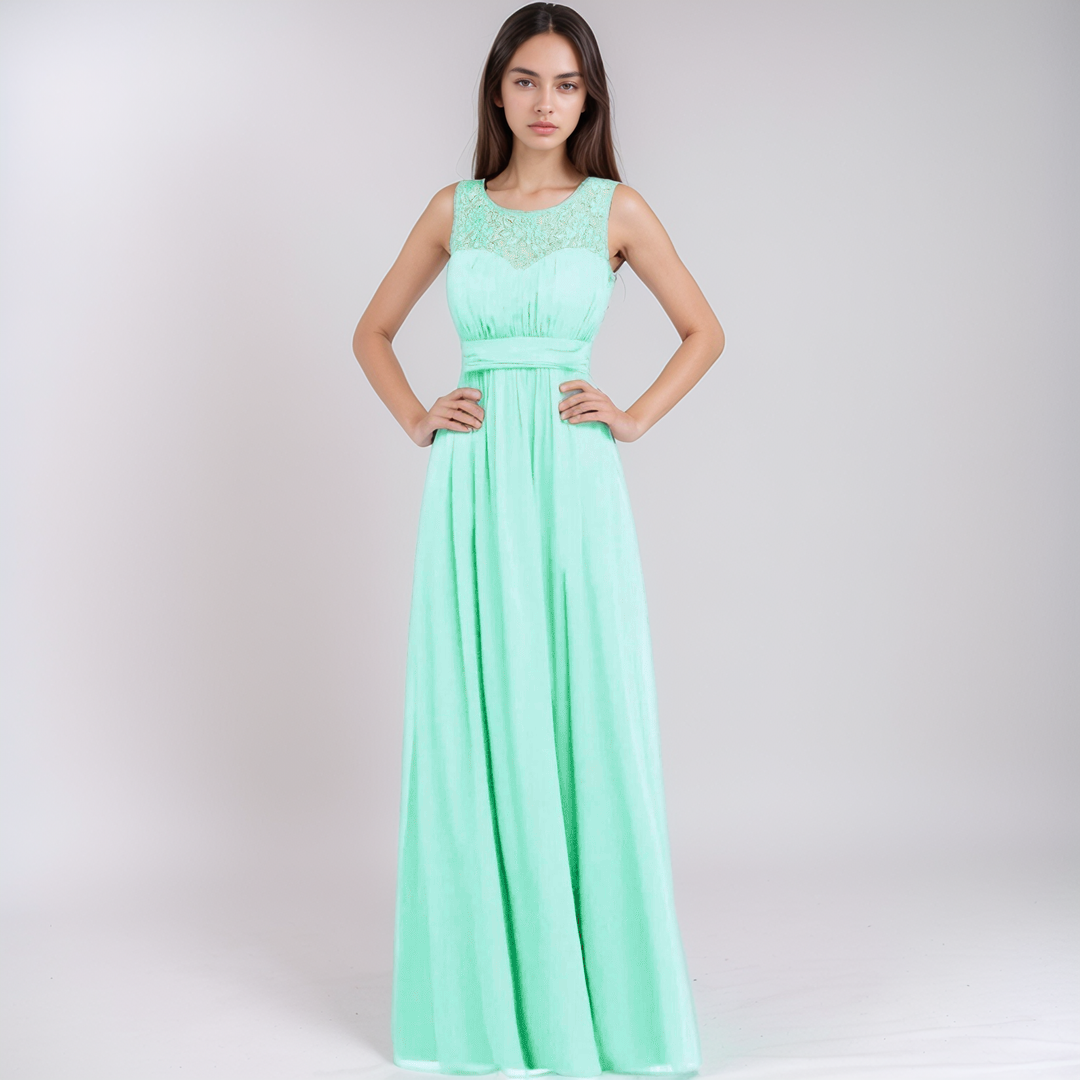 Zachwyć wszystkich w dniu swojego ślubu dzięki tej eleganckiej koronkowej sukni ślubnej o klasycznym kroju A-line. Wykonana z delikatnego szyfonu, z romantycznym dekoltem O i subtelnymi marszczeniami, ta sukienka podkreśla kobiecą sylwetkę, zapewniając jednocześnie komfort i swobodę ruchów. Idealna na wyjątkowe chwile w Twoim życiu.