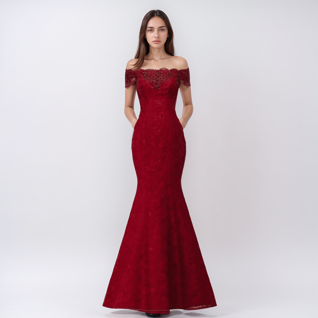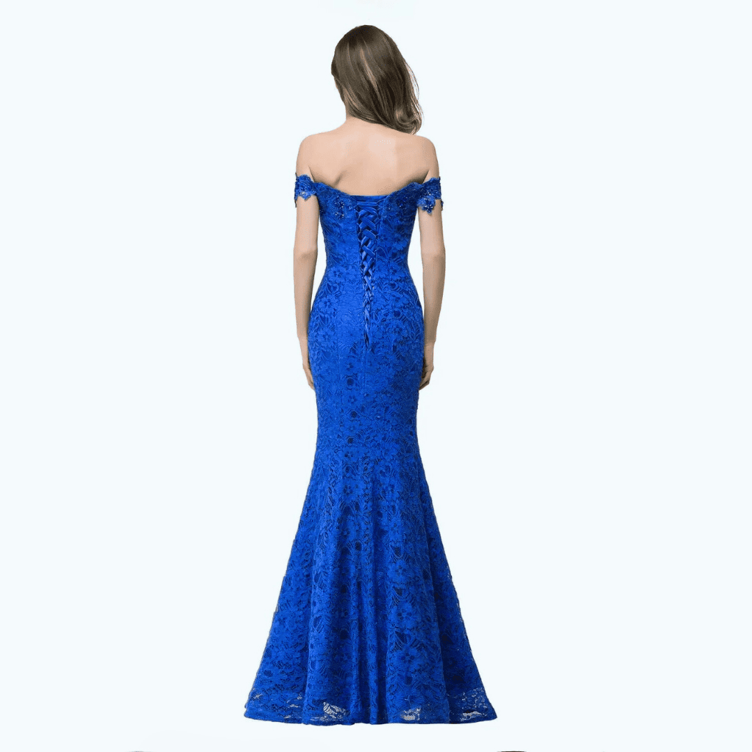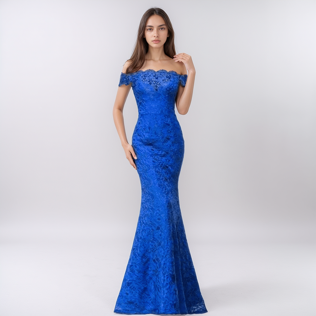 Zachwyć wszystkich na specjalnej okazji dzięki tej zjawiskowej sukni typu syrenka, wykonanej z najwyższej jakości bawełnianej koronki. Wyjątkowy dekolt typu off-shoulder i urokliwe sznurowane plecy nadają jej ponadczasowy charakter, a wbudowany stanik zapewnia wygodę i wsparcie. Suknia o długości do ziemi podkreśla sylwetkę, dodając każdej kobiecie pewności siebie i blasku.