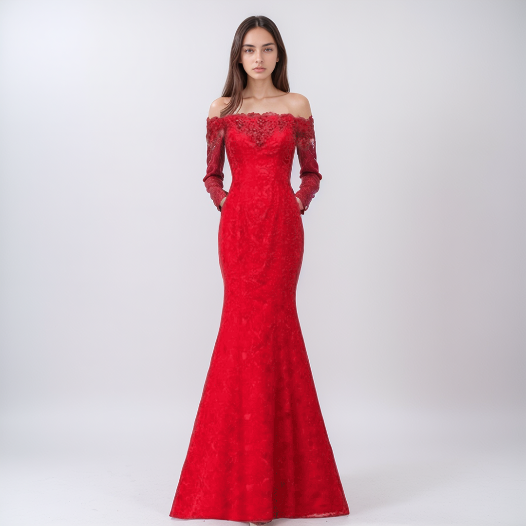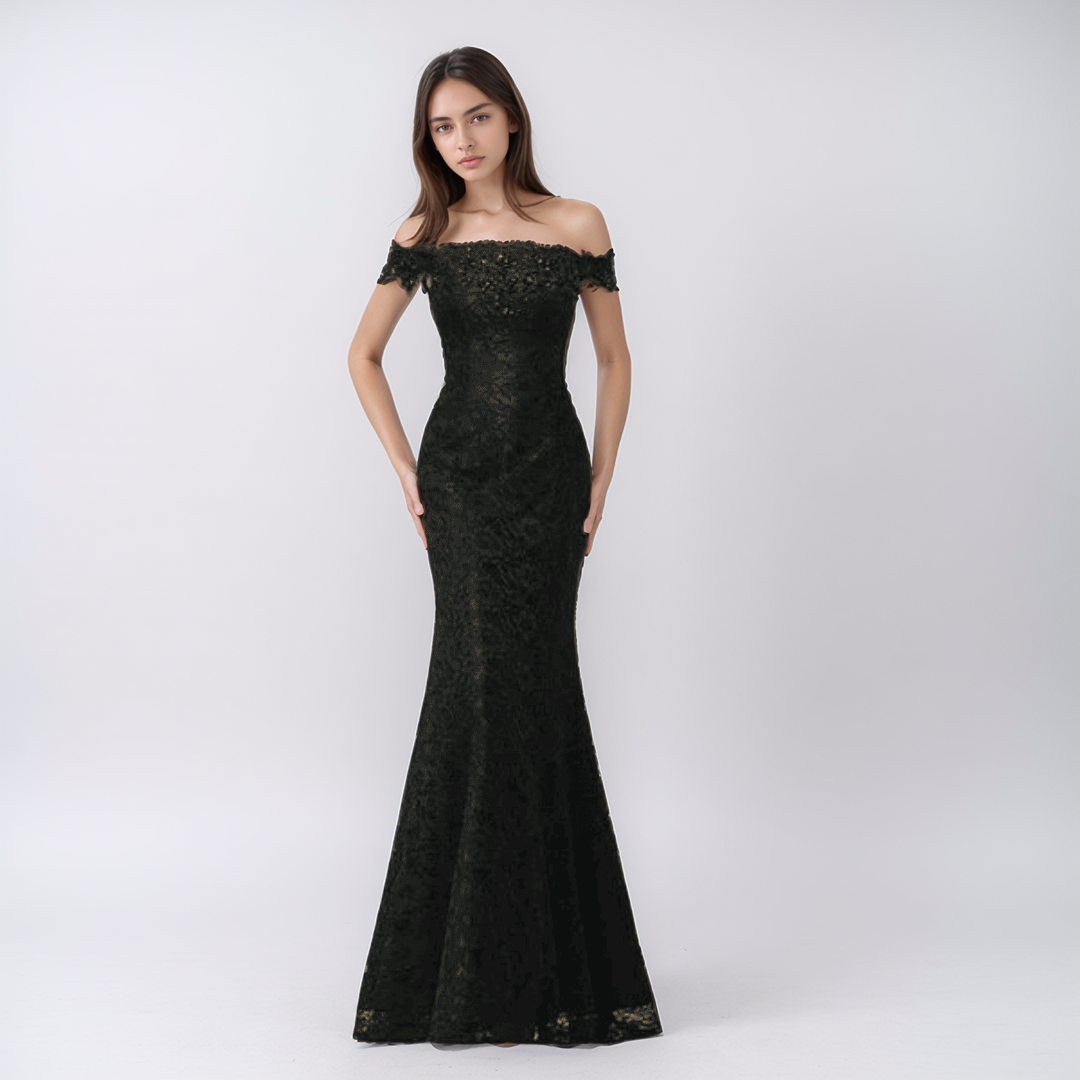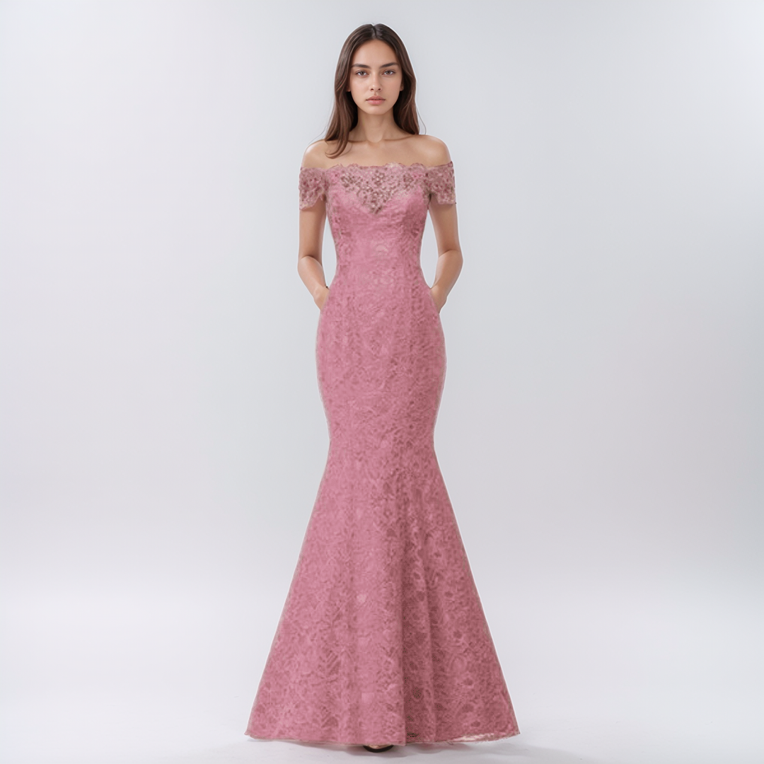 Zachwyć wszystkich na specjalnej okazji dzięki tej zjawiskowej sukni typu syrenka, wykonanej z najwyższej jakości bawełnianej koronki. Wyjątkowy dekolt typu off-shoulder i urokliwe sznurowane plecy nadają jej ponadczasowy charakter, a wbudowany stanik zapewnia wygodę i wsparcie. Suknia o długości do ziemi podkreśla sylwetkę, dodając każdej kobiecie pewności siebie i blasku.