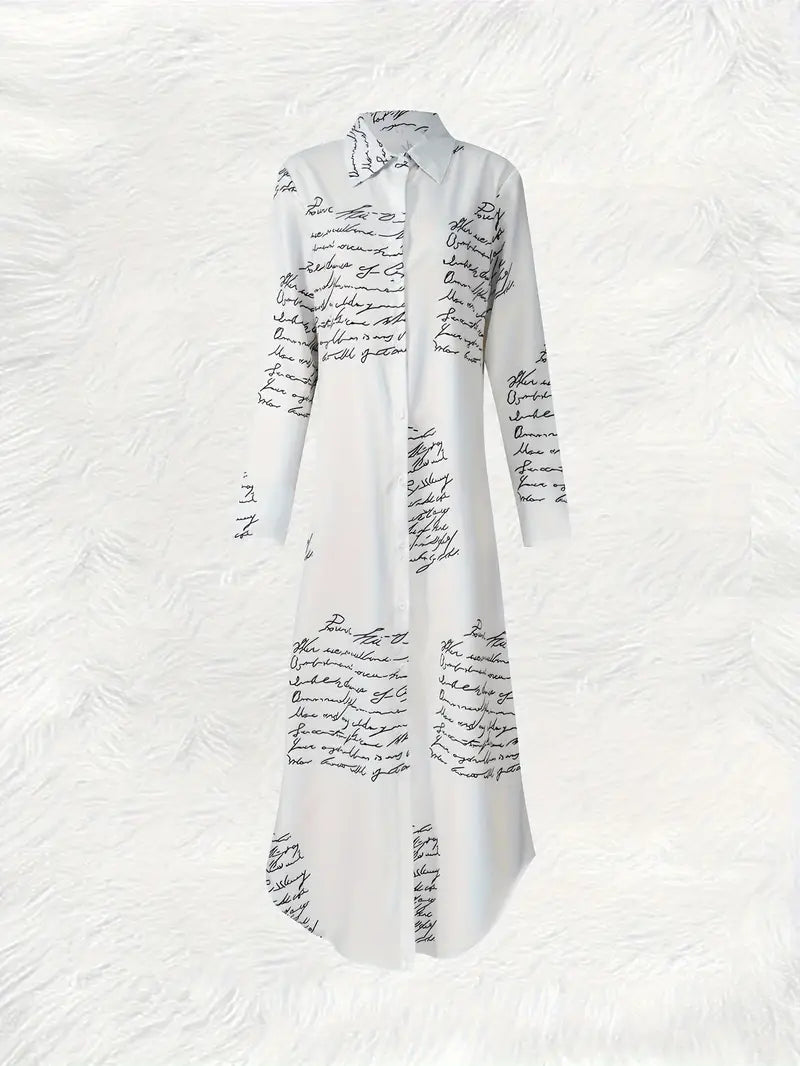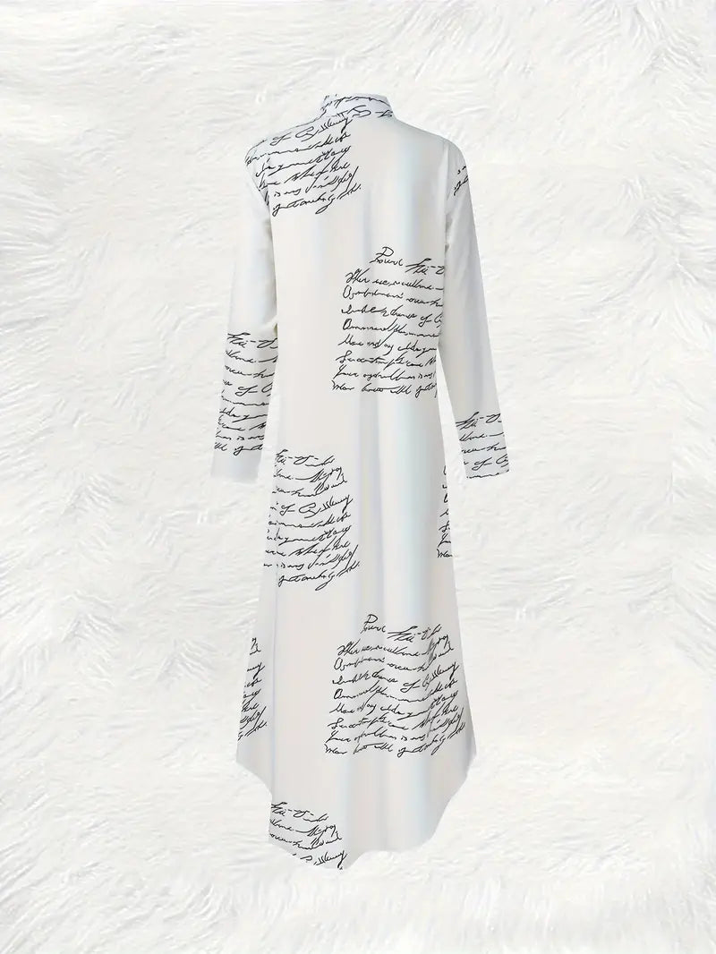 Ta modna koszulowa sukienka maxi z nadrukiem liter jest stylowa i wygodna. Zaprojektowana z luźnym krojem, zapięciem na guziki i długimi rękawami, jest idealnym wyborem dla szykownego wakacyjnego wyglądu. Lekka tkanina zapewnia przewiewność, dzięki czemu jest to wygodna opcja na swobodne wyjścia lub spacery po plaży.