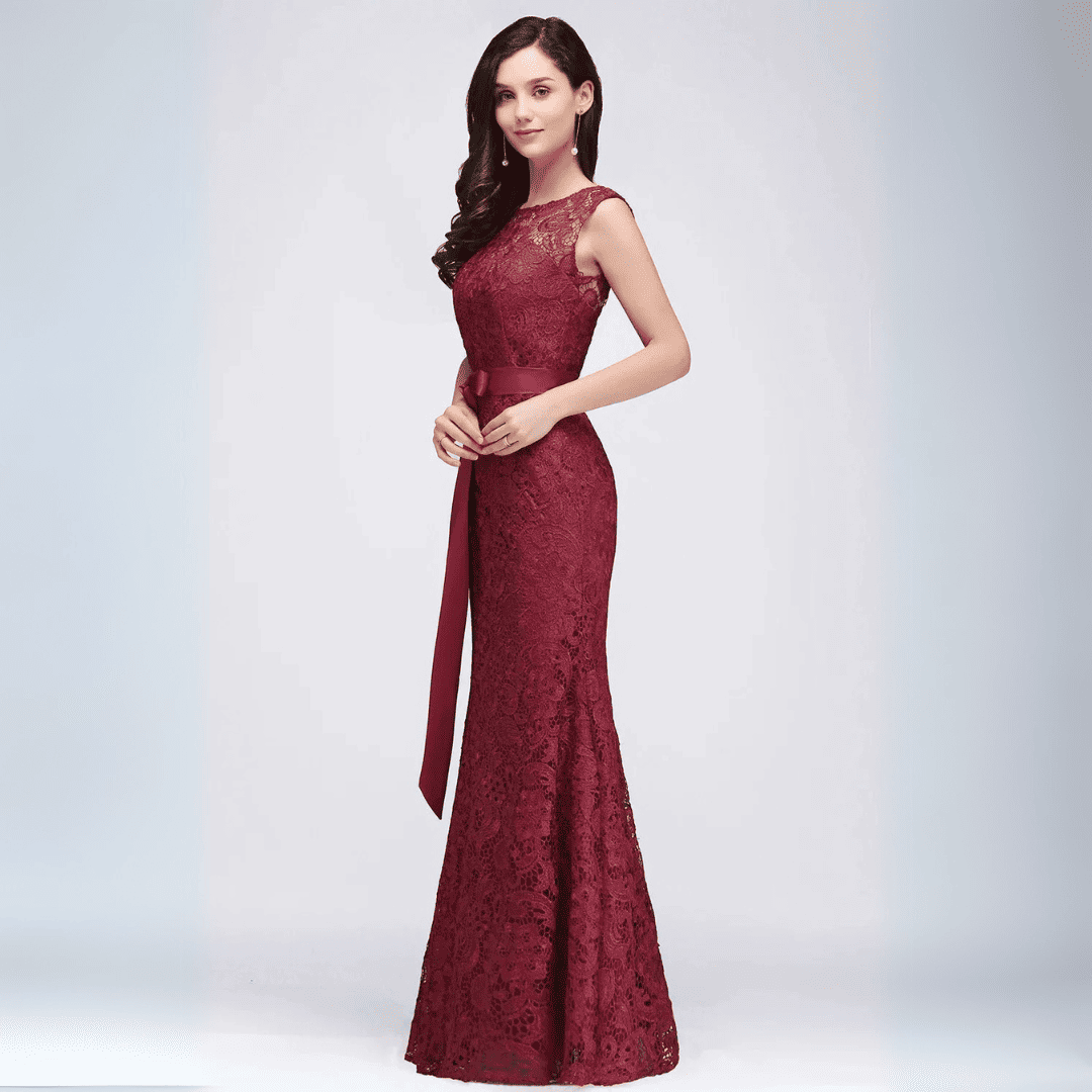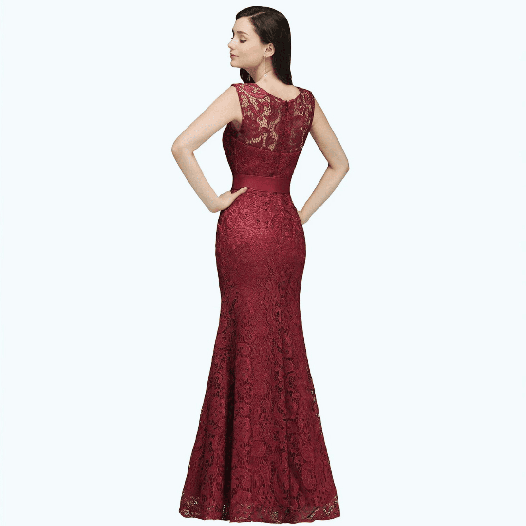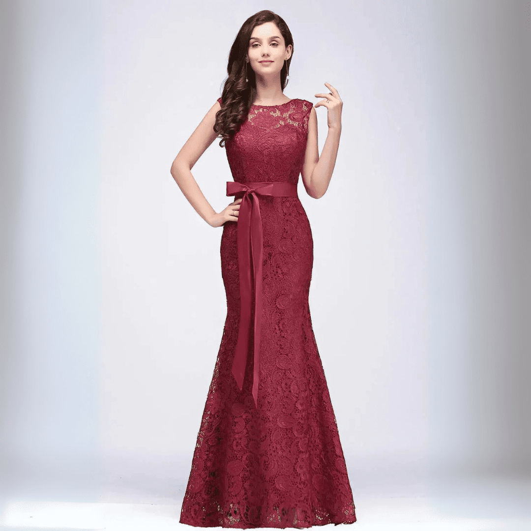 Wyjątkowa bordowa suknia syrenka z haftowaną koronką