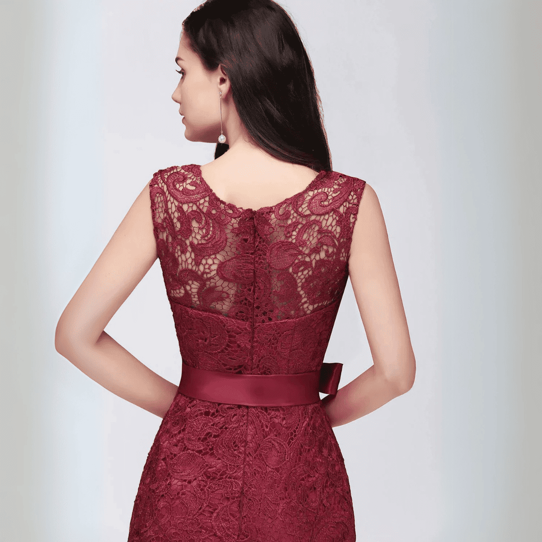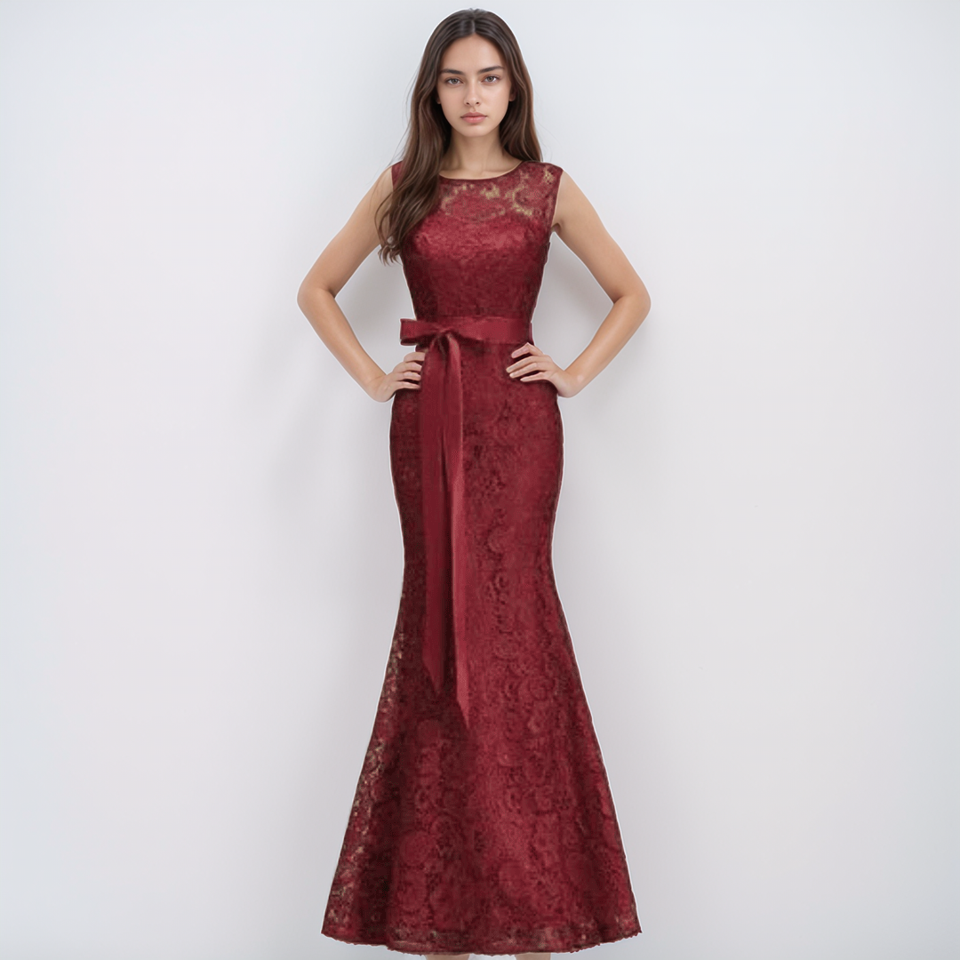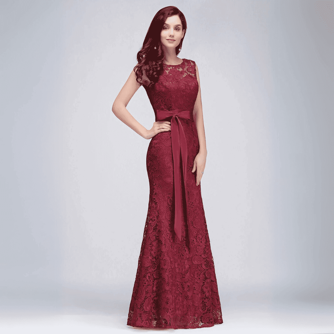 Wyjątkowa bordowa suknia syrenka z haftowaną koronką