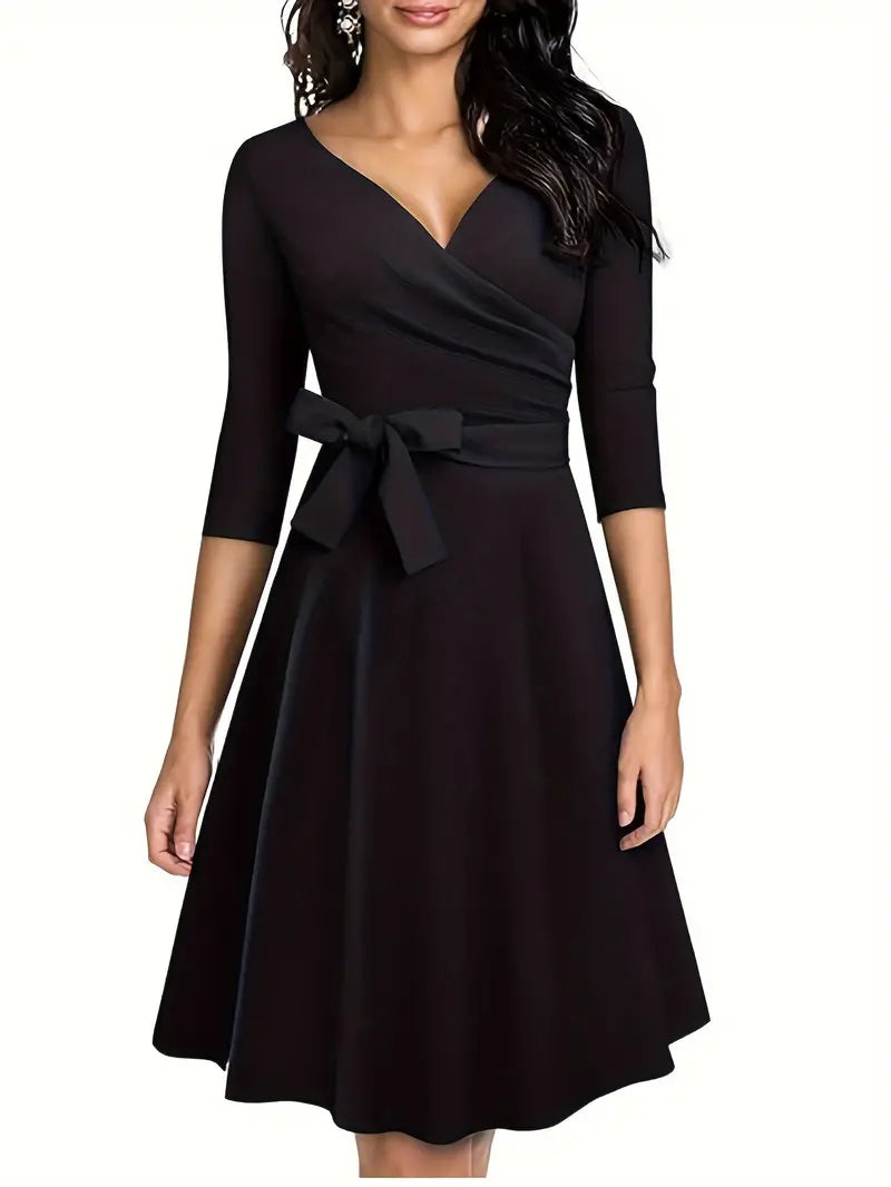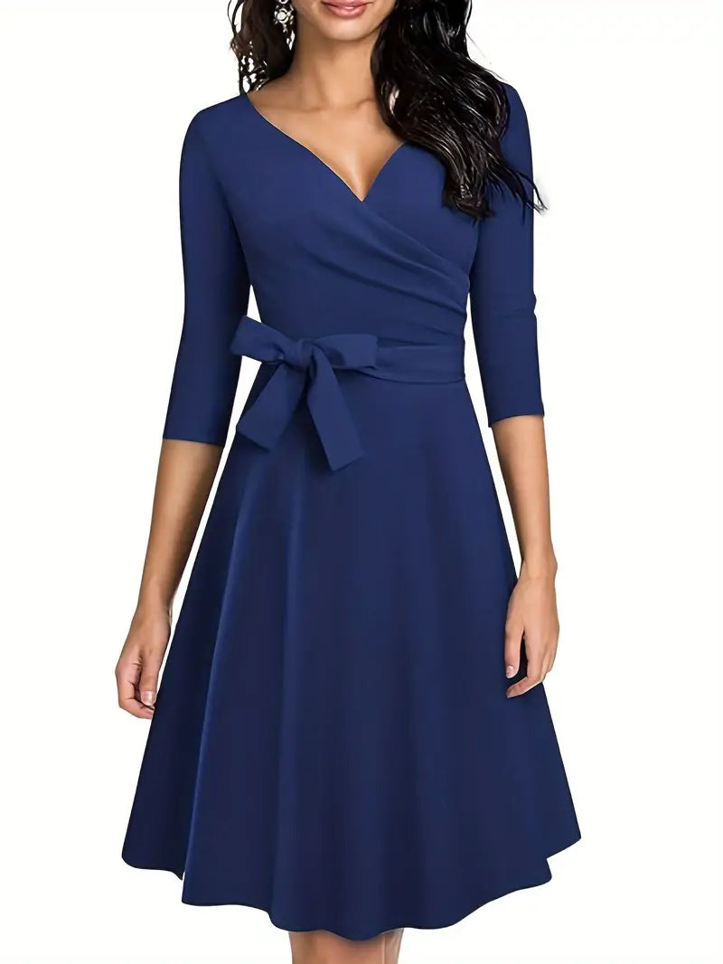 Oto nasza letnia sukienka z solidnymi rękawami 3/4 i linią A, wszechstronny i stylowy wybór na cieplejsze miesiące. Wykonana z wysokiej jakości materiałów, ta sukienka oferuje zarówno wygodę, jak i elegancję, dzięki czemu jest idealna do letniej garderoby. Sylwetka w kształcie litery A i rękawy 3/4 tworzą pochlebny i ponadczasowy wygląd, który można ubrać w górę lub w dół na każdą okazję. Dostępna w dwóch pięknych kolorach, z łatwością znajdziesz idealny odcień, który uzupełni Twój styl. Niezależnie od tego, czy wybierasz się na codzienną wycieczkę, czy na letni wieczór, ta letnia sukienka z solidnymi rękawami 3/4 i linią A zapewni Ci chłód i szyk przez cały sezon.