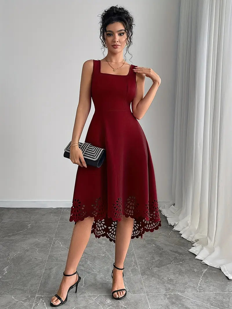 Ta zwiewna sukienka o linii A to idealny wybór na słoneczne dni! Fason bez rękawów i ażurowe detale nadają jej elegancki i figlarny wygląd, a dopasowany krój pięknie podkreśla sylwetkę. Lekki materiał zapewnia najwyższy komfort, idealny na dzień lub letni wieczór. Połącz z sandałami, aby uzyskać swobodny wygląd lub szpilkami, aby uzyskać szykowny akcent!