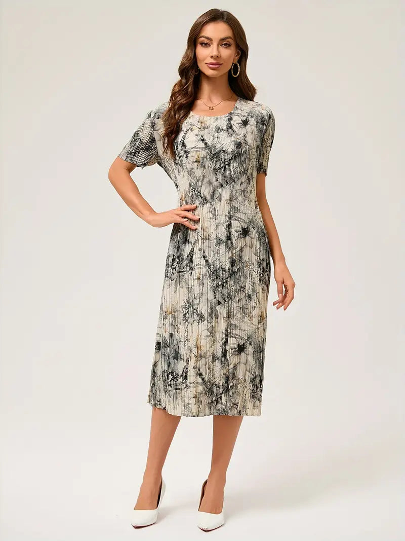 Sukienka letnia w dużych rozmiarach - Elegancka plisowana sukienka z nadrukiem