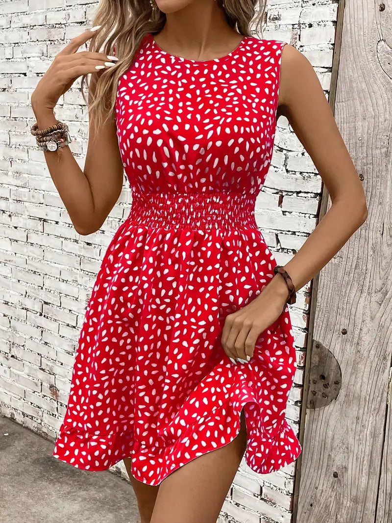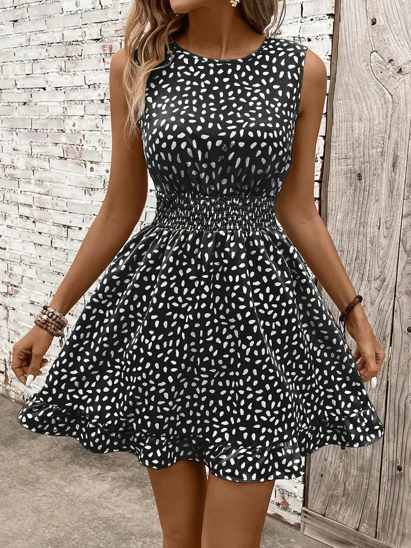 Swobodna sukienka o linii A z nadrukiem - wygodna letnia sukienka dla kobiet