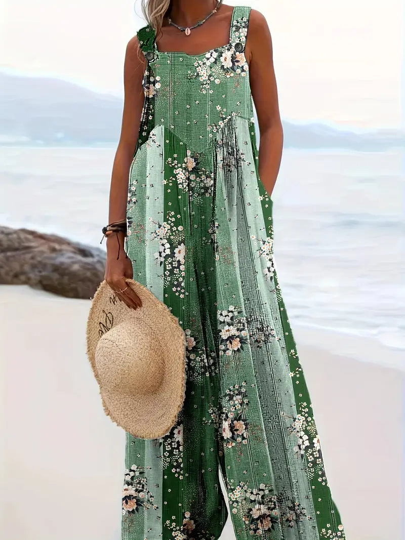 Casualowy kombinezon z szerokimi nogawkami i kwiatowym nadrukiem w dużych rozmiarach