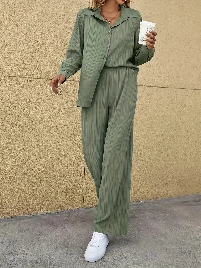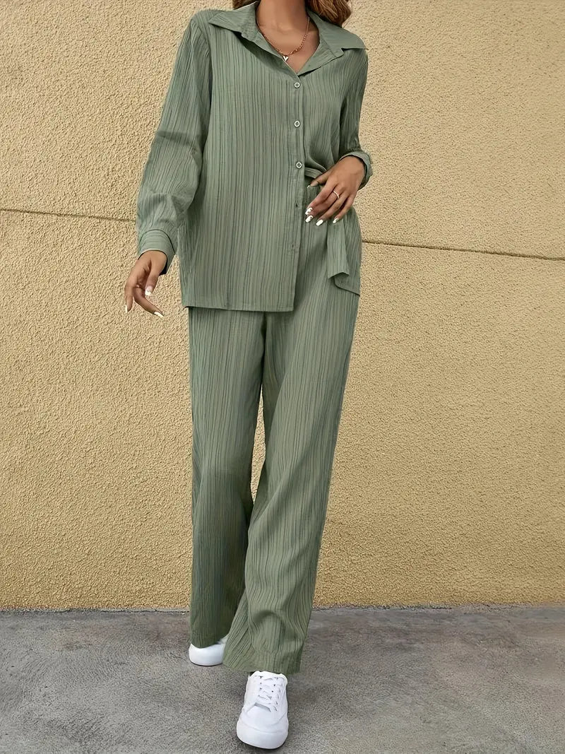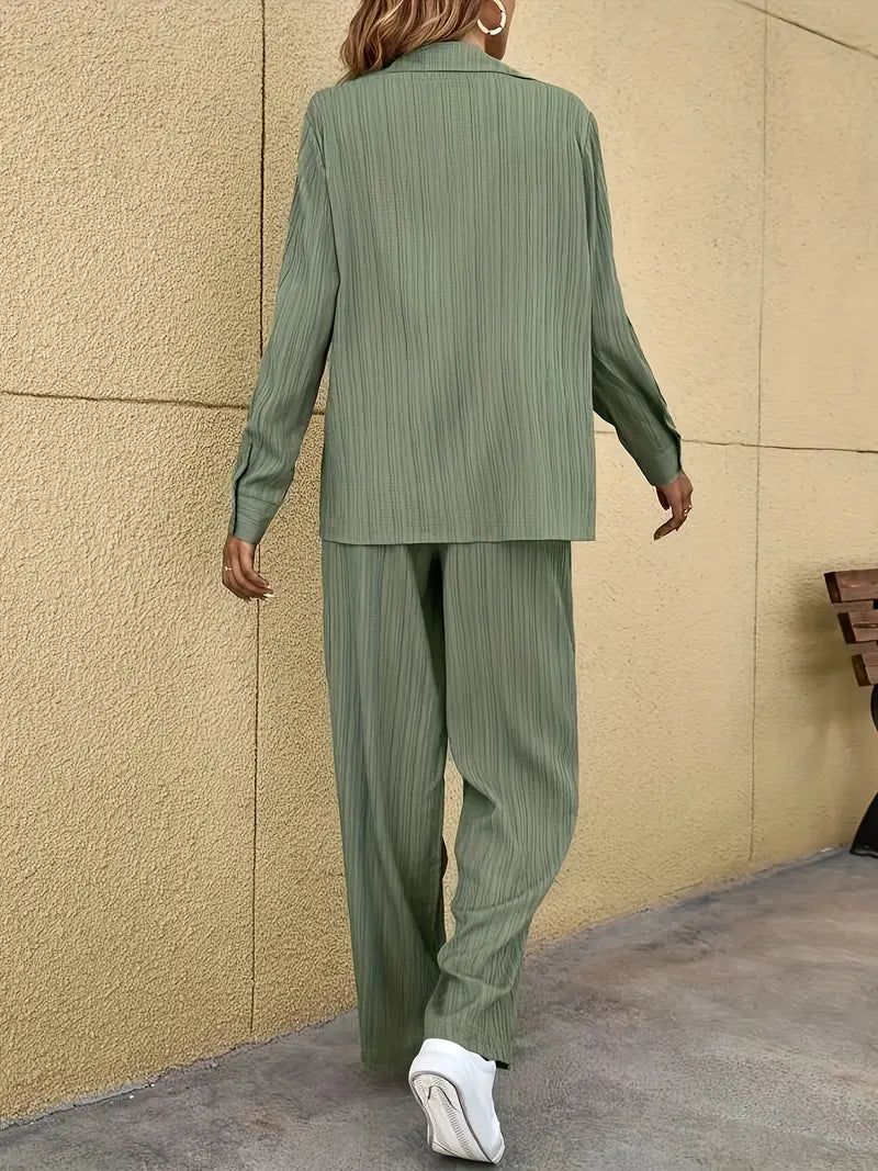Ten elegancki letni zestaw jest niezbędny na gorące dni. Wykonany z lekkiego poliestru zestaw zapewnia wygodę i przewiewność, a jednocześnie wygląda stylowo. Zestaw zawiera marynarkę z klapowym kołnierzem i dopasowane spodnie z guzikami, idealne do swobodnego szyku.