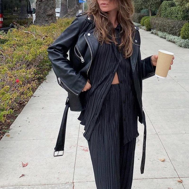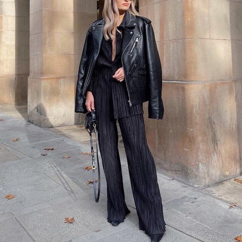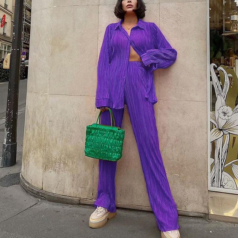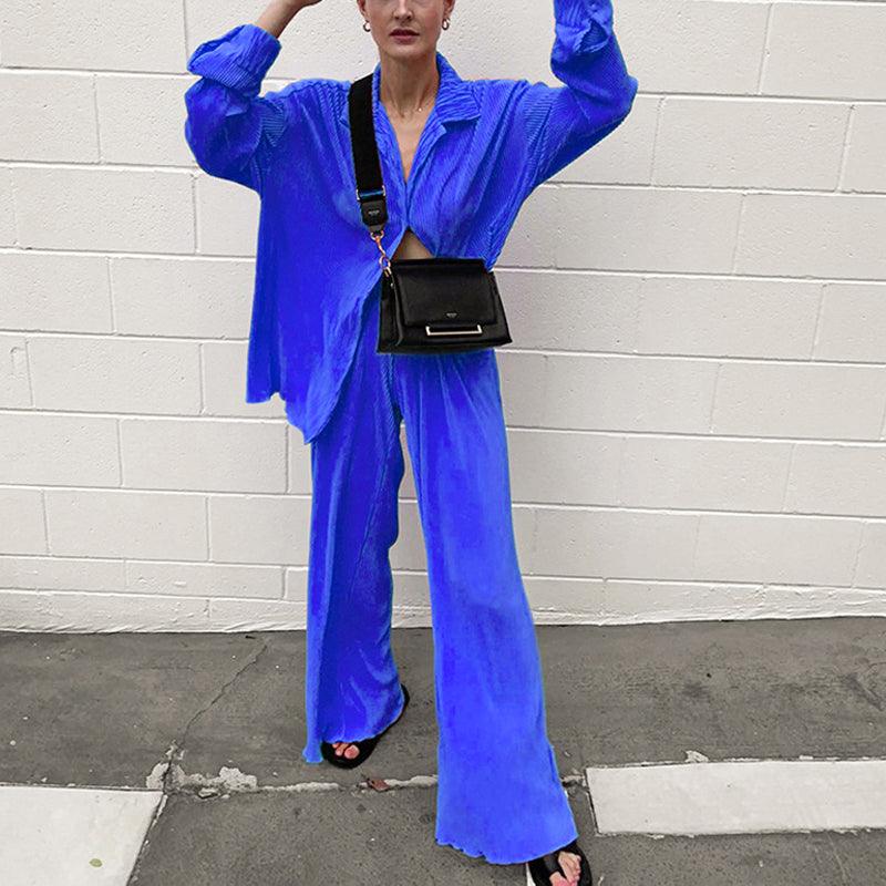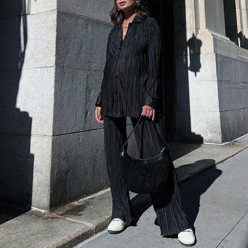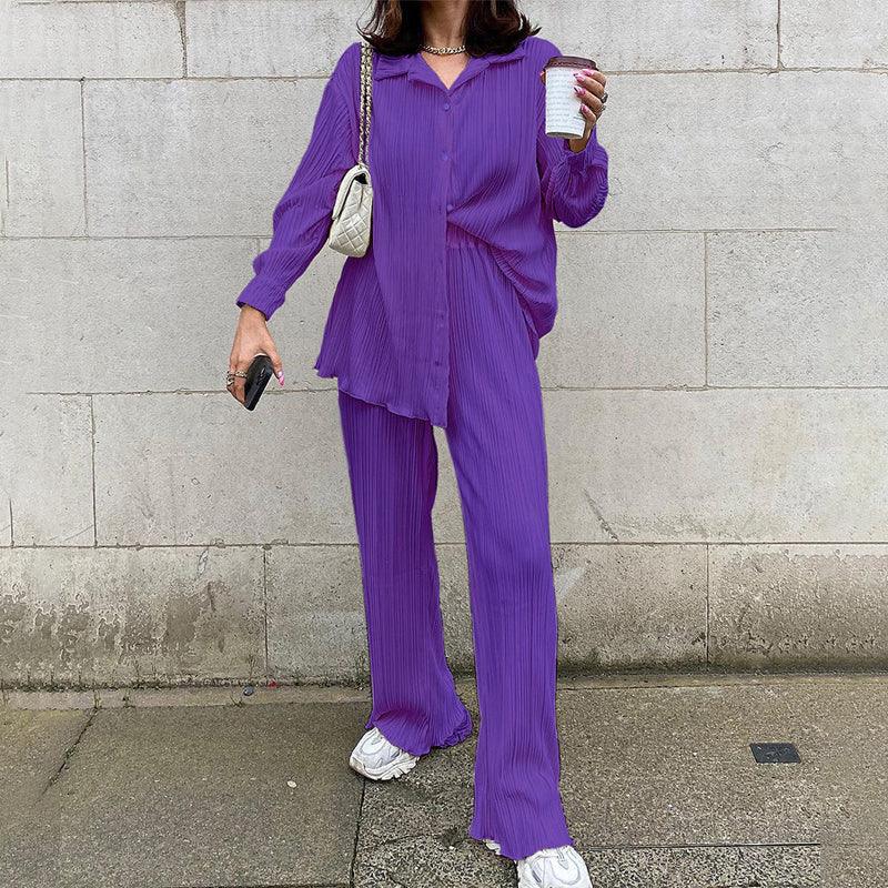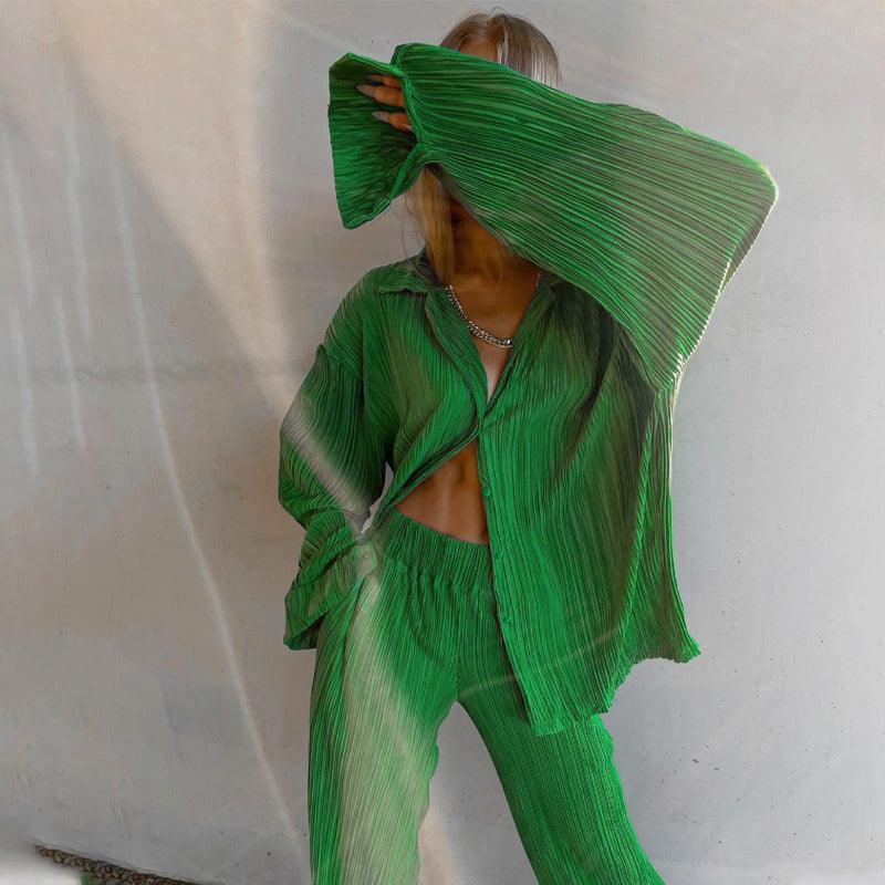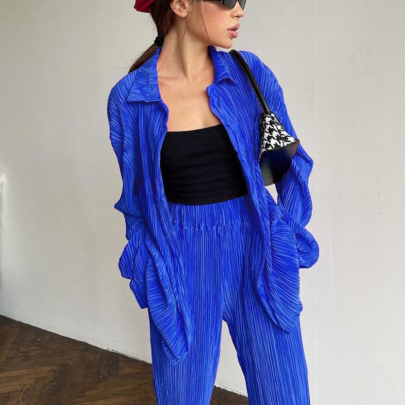 • 1 * Damski elegancki plisowany zestaw dwuczęściowy